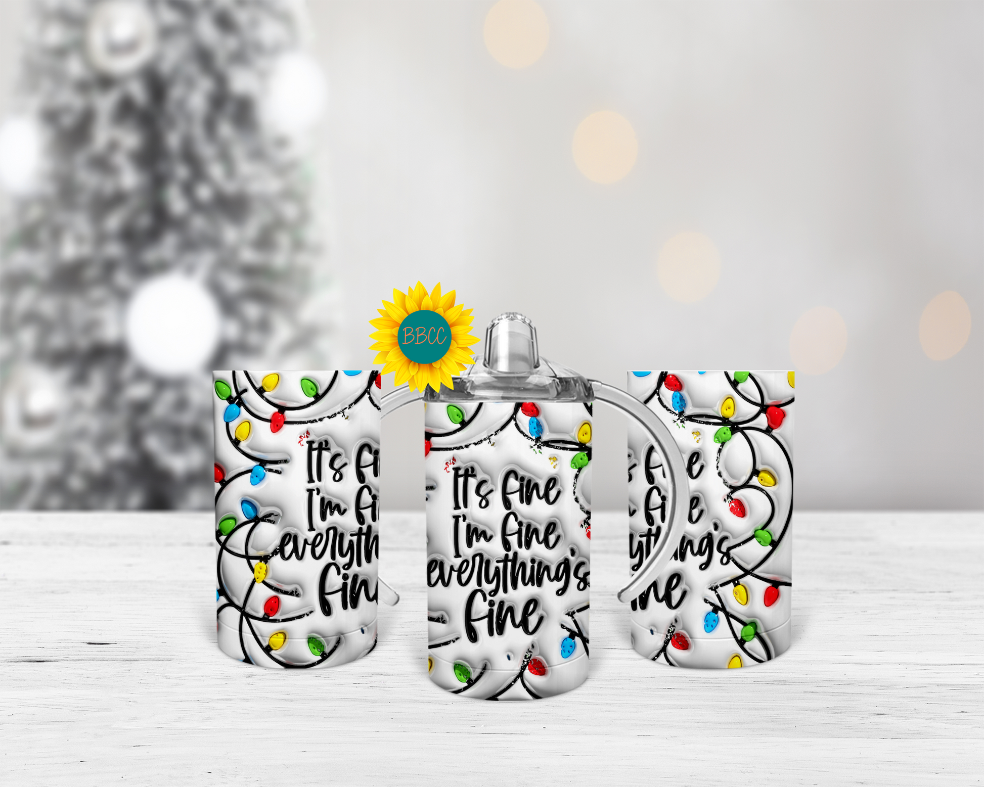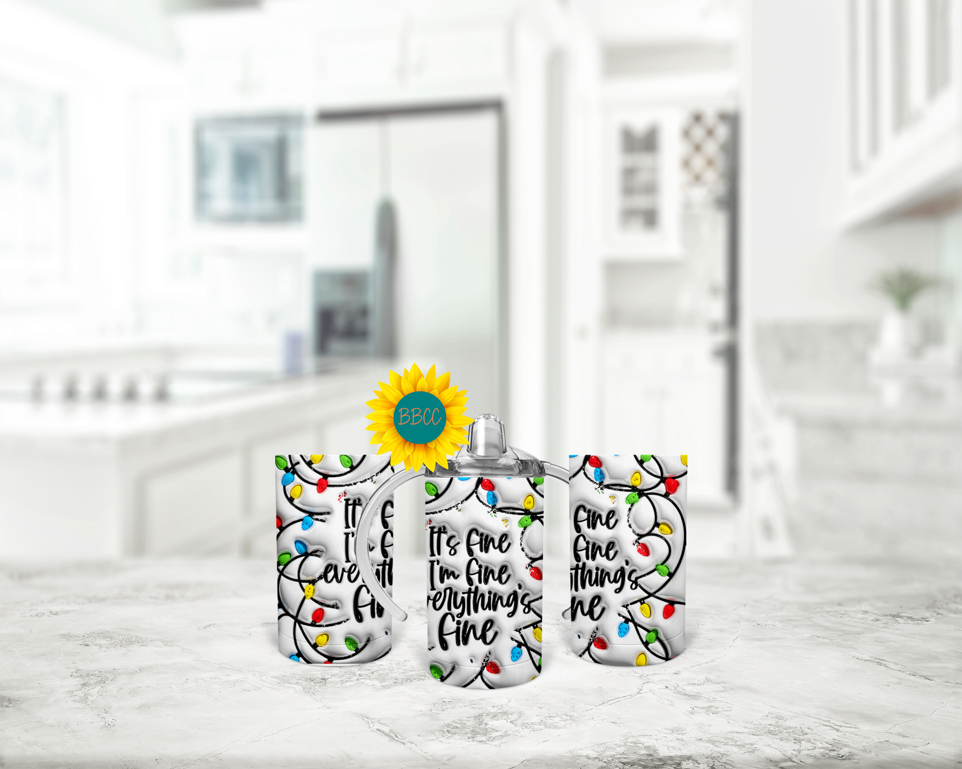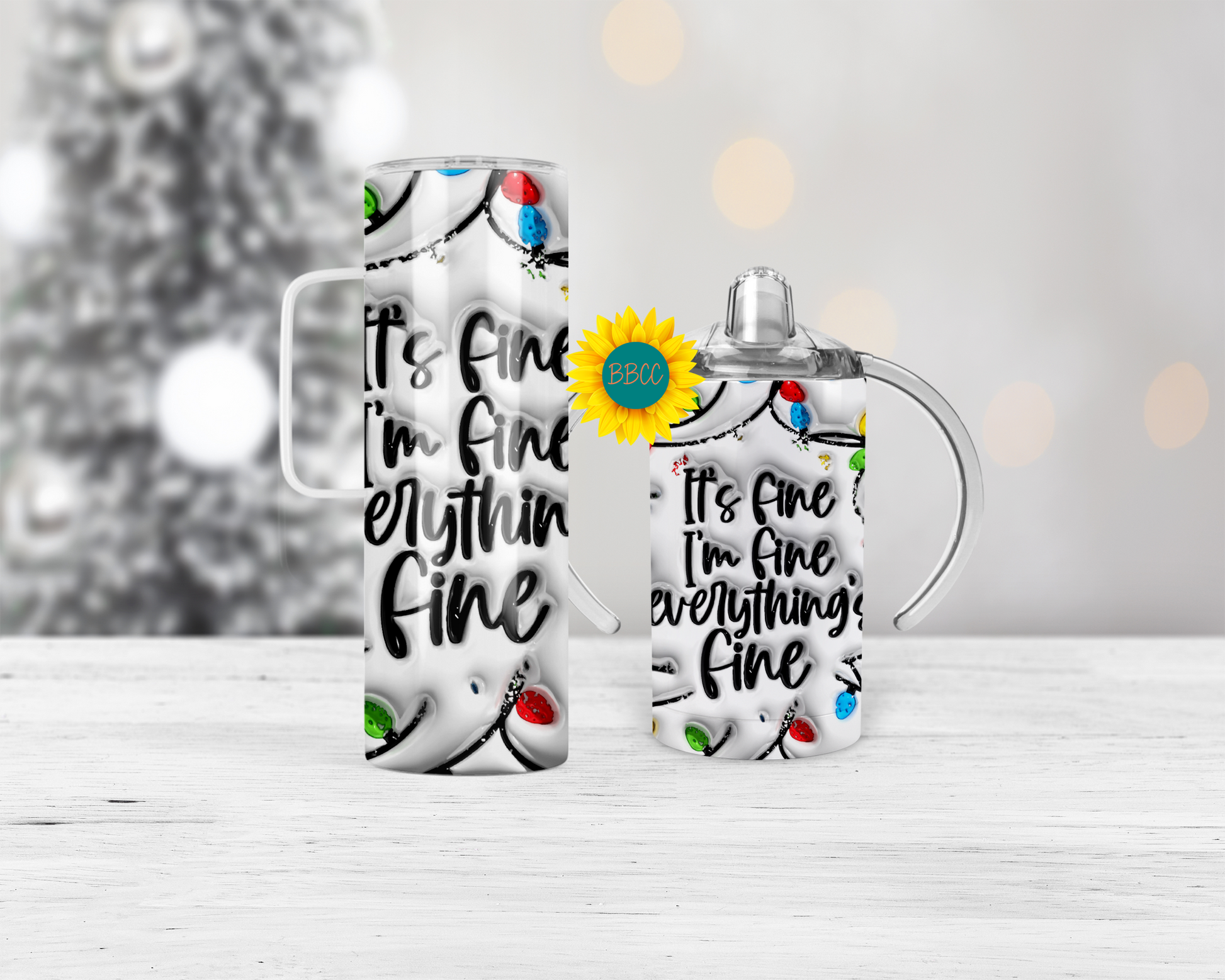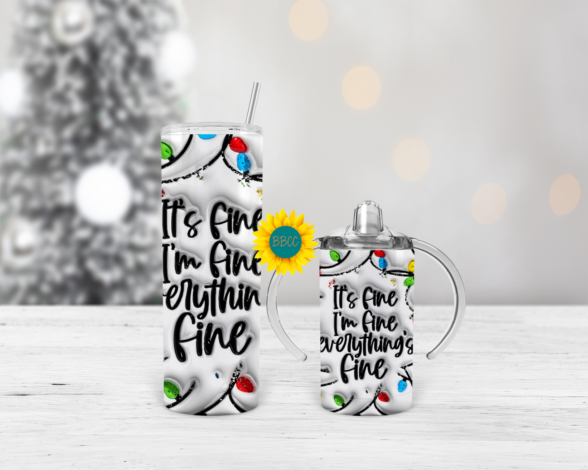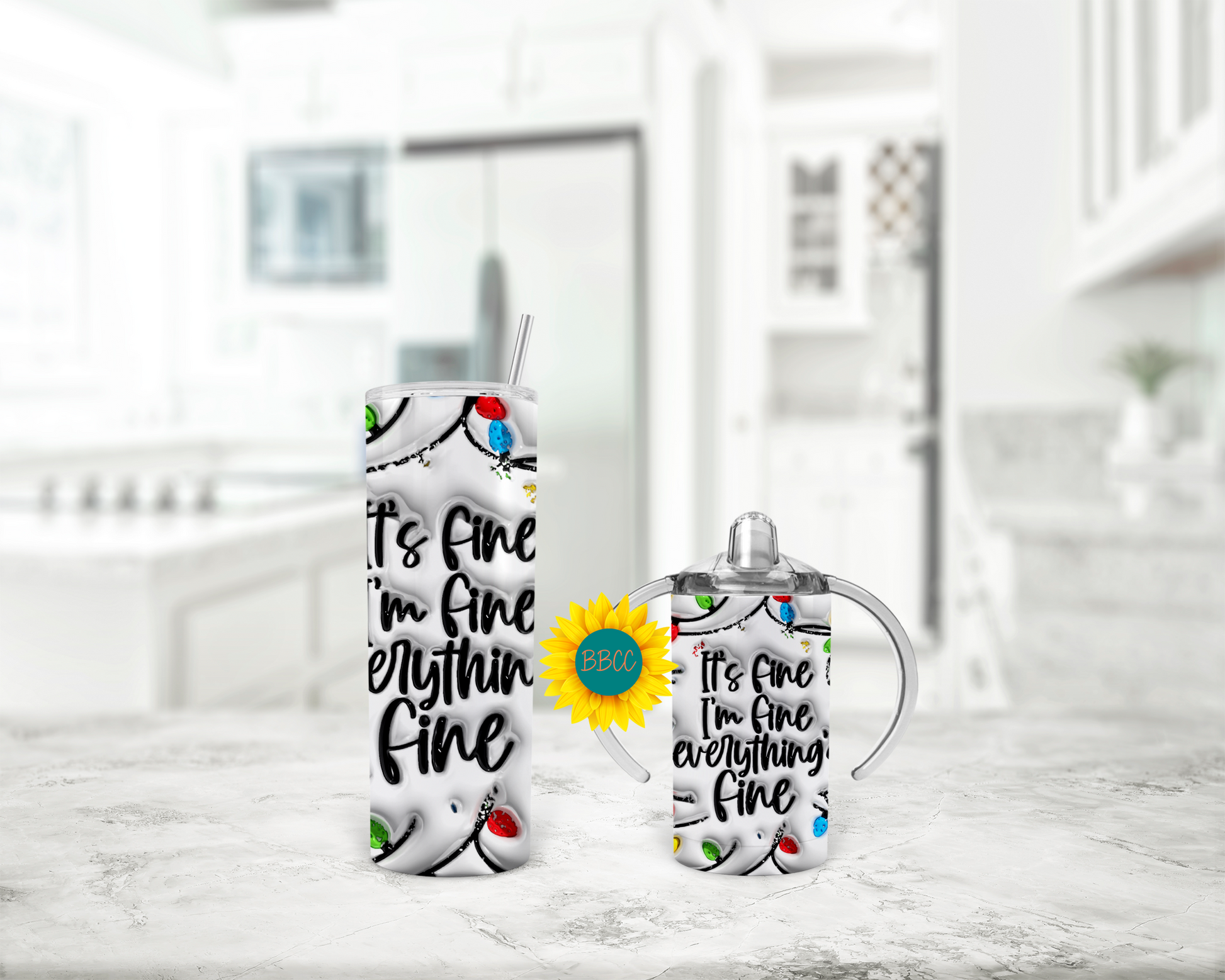 Get through the holiday chaos in style with our Everything's Fine Tumbler. This quirky 20 oz tumbler, available in straight style, features the perfect festive phrase "It's fine, I'm fine, Everything is fine" surrounded by twinkling Christmas lights. Keep calm and carry on with this must-have holiday accessory!