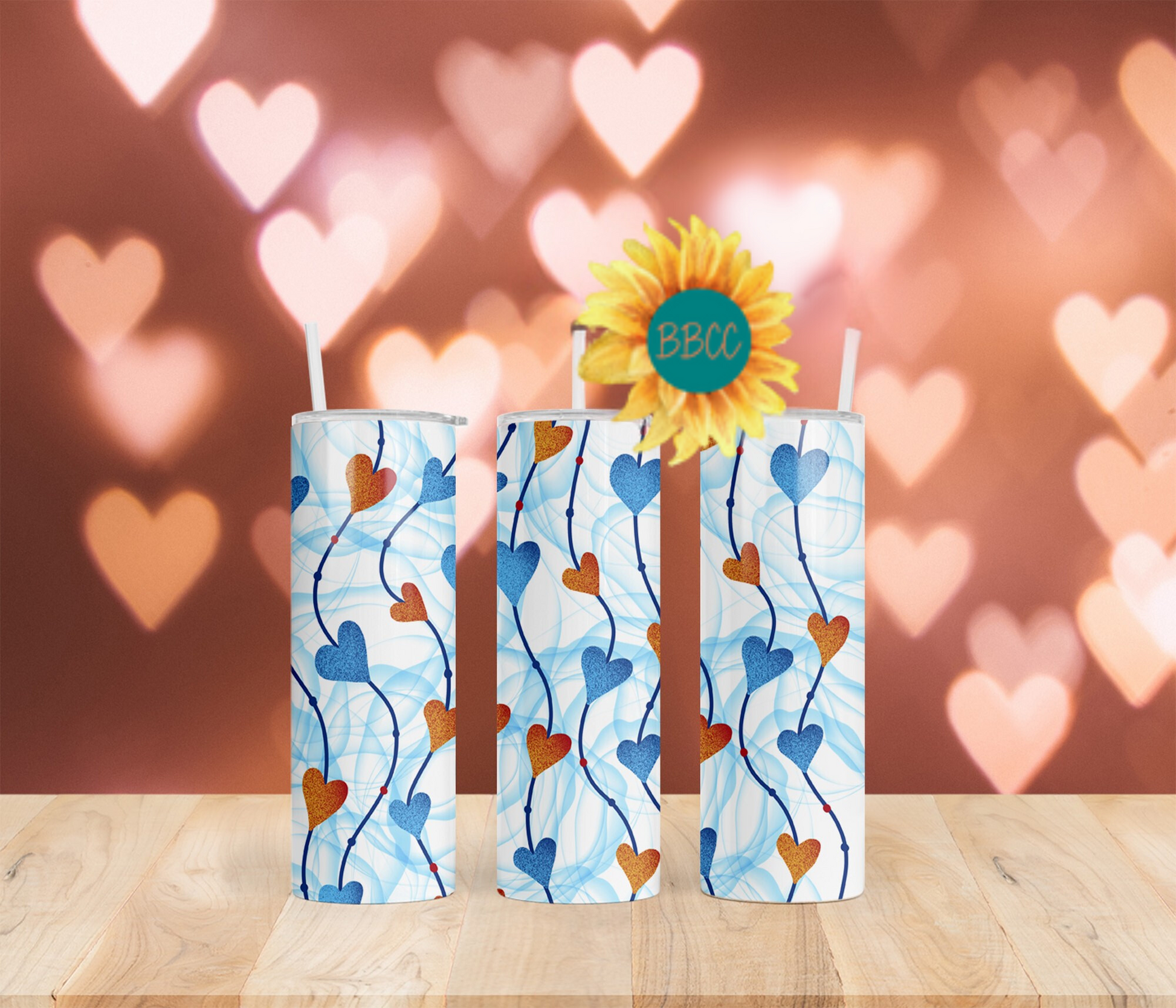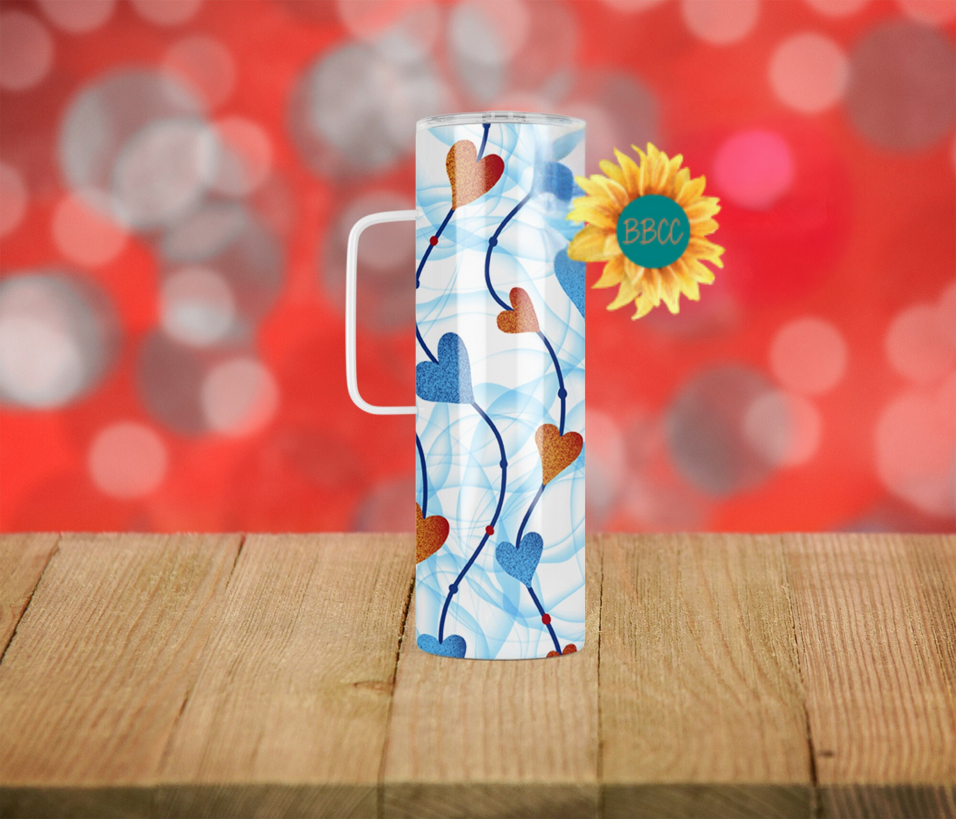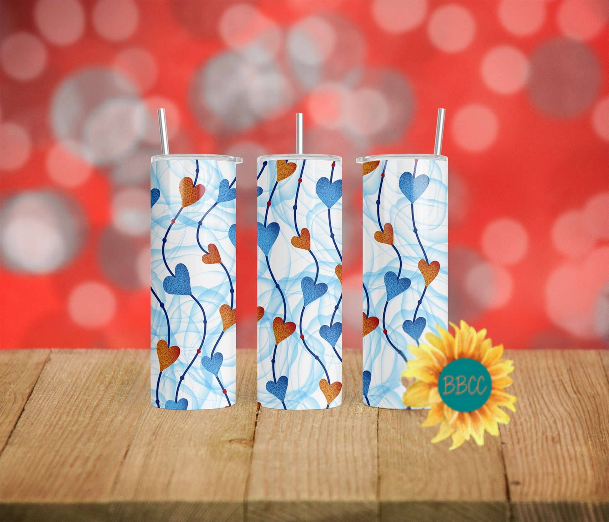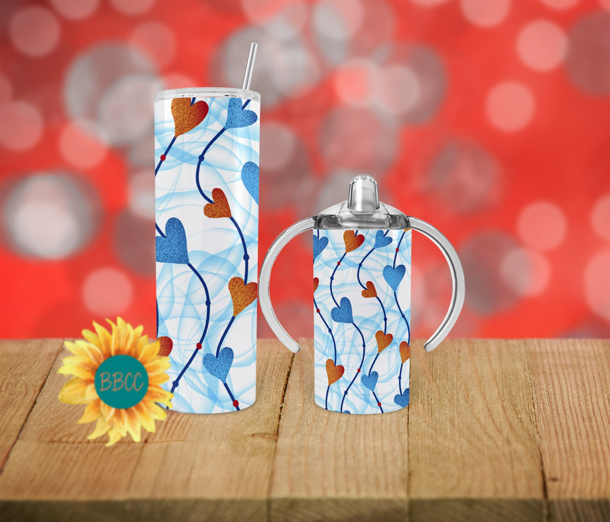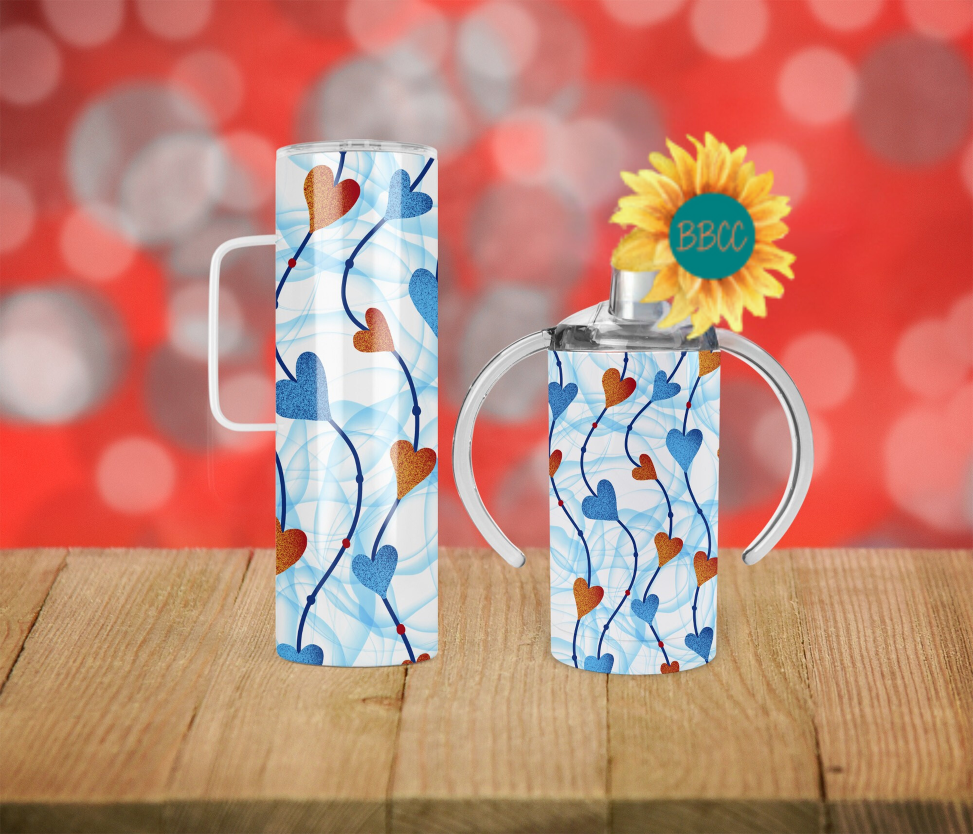 This tumbler features charming blue and red hearts strung together on a crisp white background, accented by delicate blue swirls. Available in a variety of sizes and combinations, it’s the perfect way to add a touch of whimsy to your everyday beverage routine.