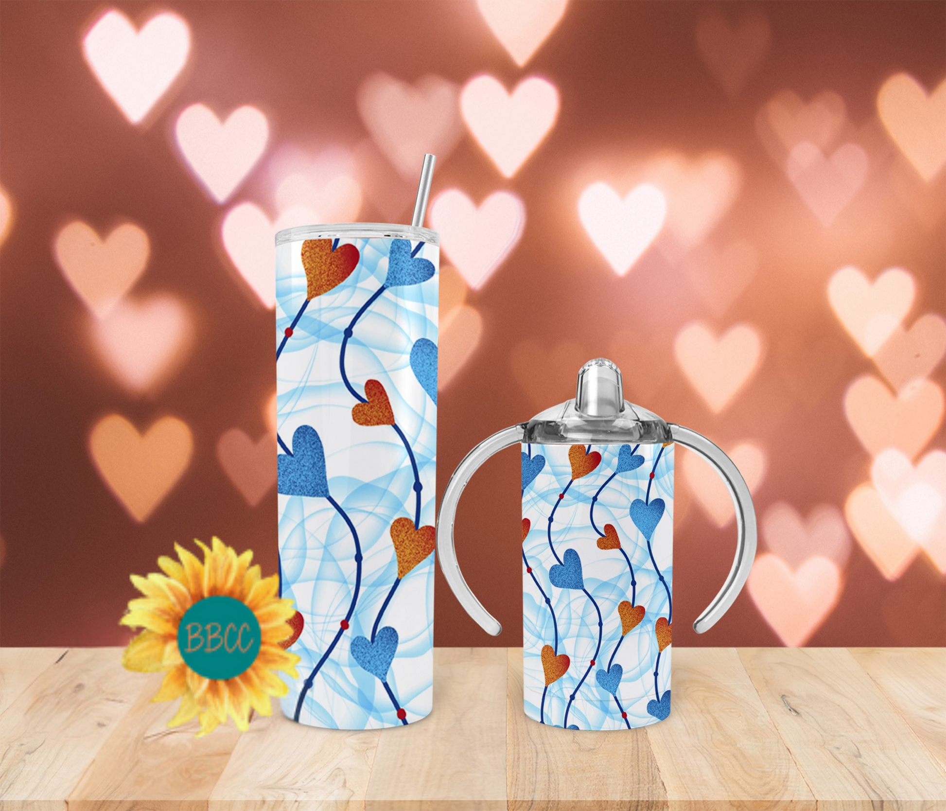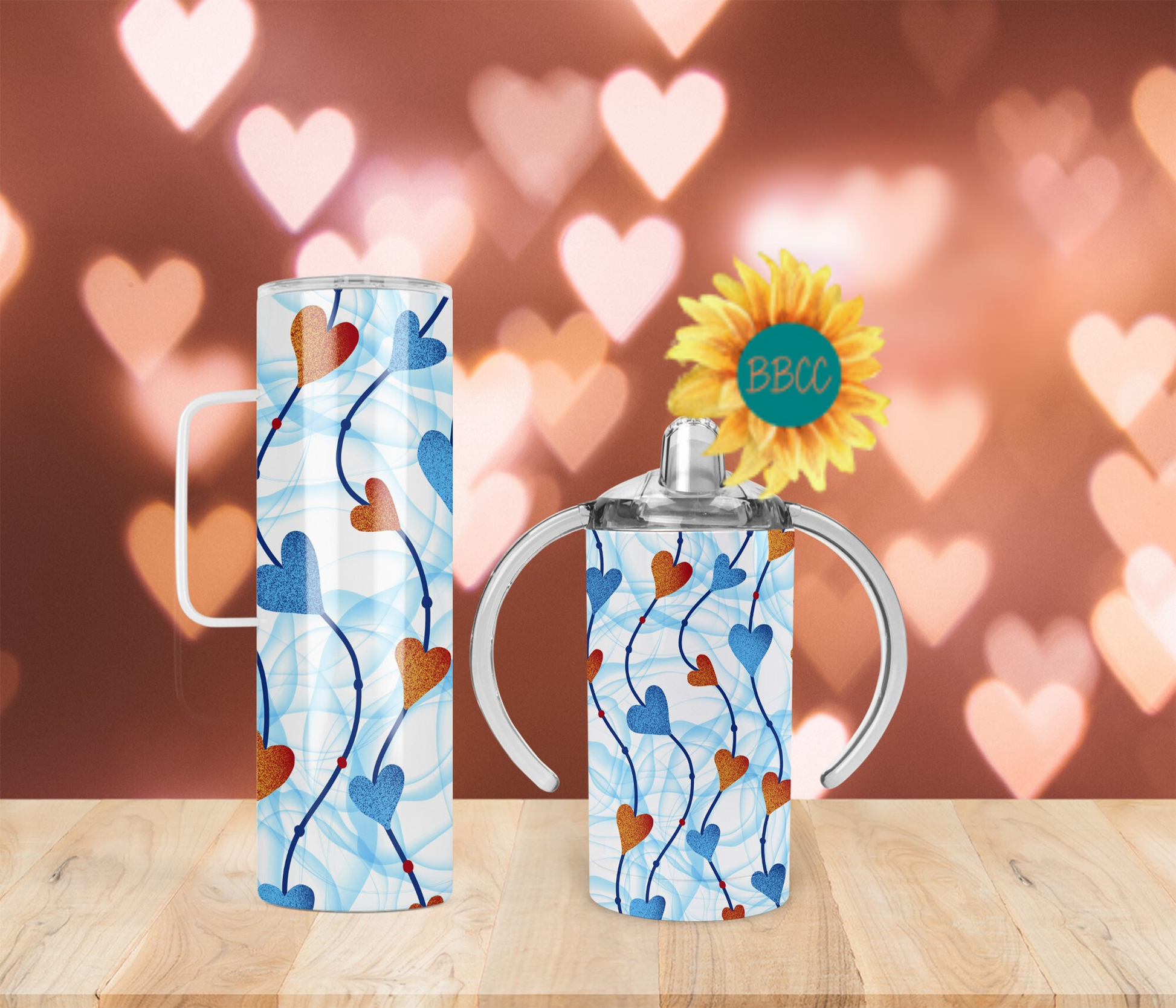 Blue and Red Hearts Tumbler