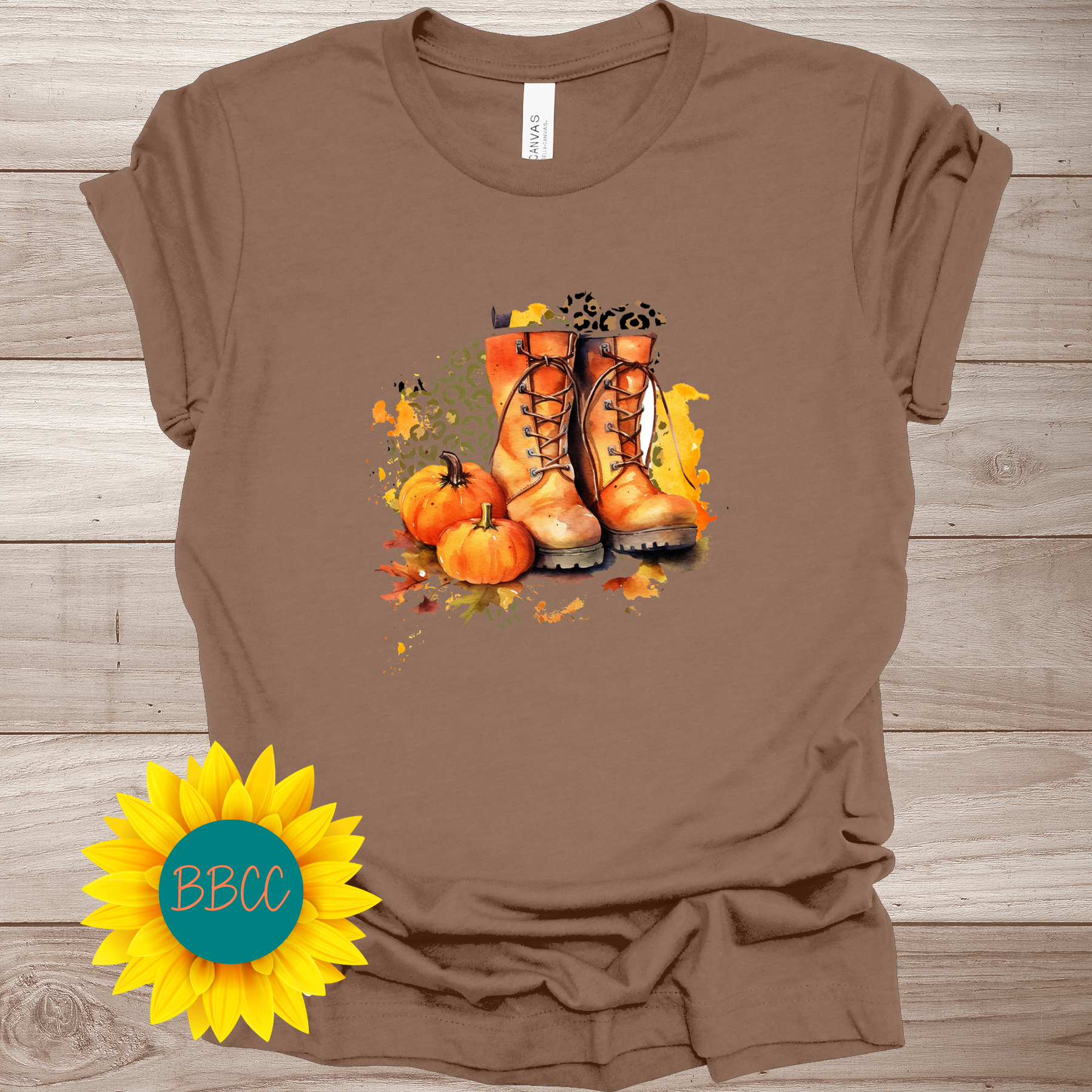 Expertly designed with vibrant orange boots, playful splashes of color, and animal print, this shirt features two pumpkins for a fun, fall-inspired touch. Perfect for making a bold statement and standing out from the crowd, these eye-catching boots add a unique flair to your wardrobe. Stay on trend while embracing a fun, playful vibe with this standout tee!