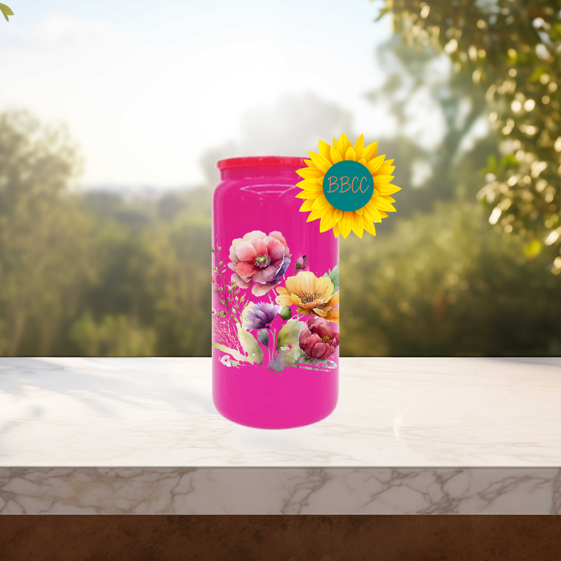 Bring a burst of color to your day with our Floral Bouquet 16oz tumbler! Featuring a bright and beautiful floral design, this cup is available in lightweight plastic or durable stainless steel, with a range of fun color options like Jelly Light Pink, Neon Blue, and Powdered Coated Teal. Perfect for coffee, tea, or your favorite cold drinks, this stylish cup is a cheerful addition to any routine — and a perfect gift for any flower lover!