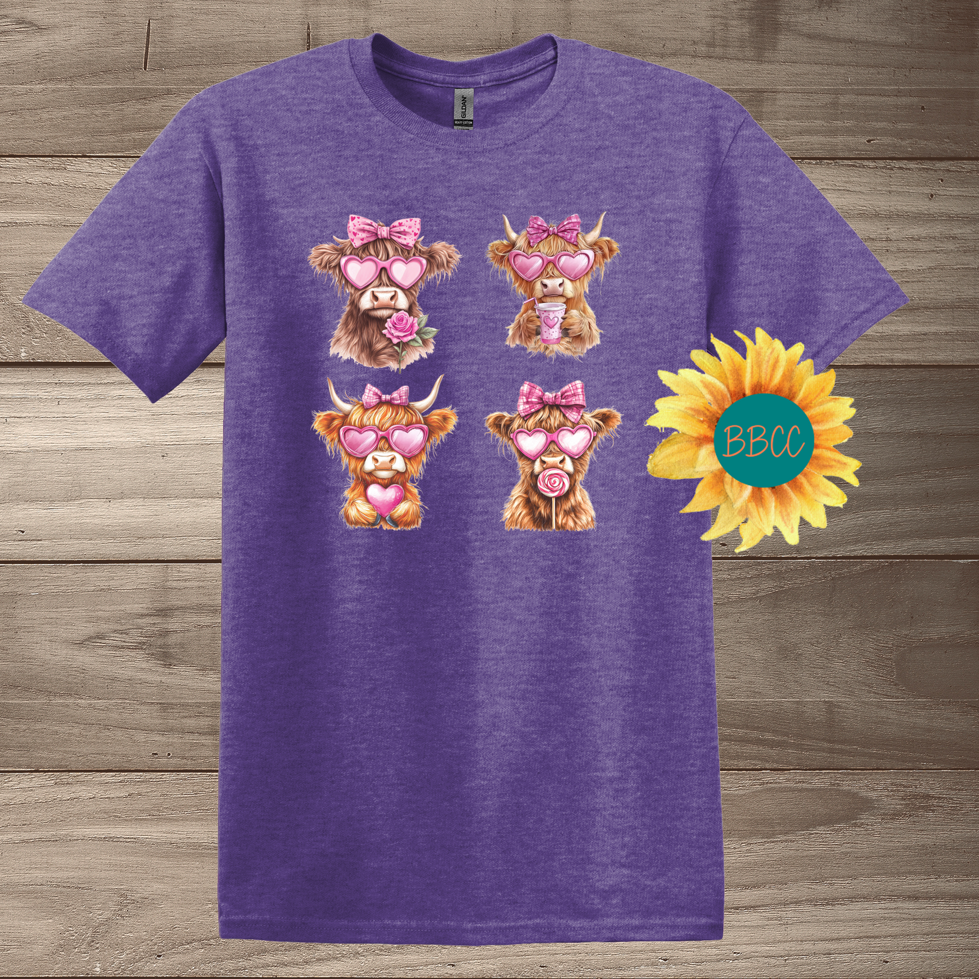 Bring some fun and personality to your everyday style with our Highland Cows T-Shirt. Featuring adorable baby highland cows wearing heart-shaped glasses and quirky accessories, this shirt is sure to make a statement. Available in a variety of colors and sizes XS–4XL, it’s the perfect blend of cute and playful for any wardrobe.