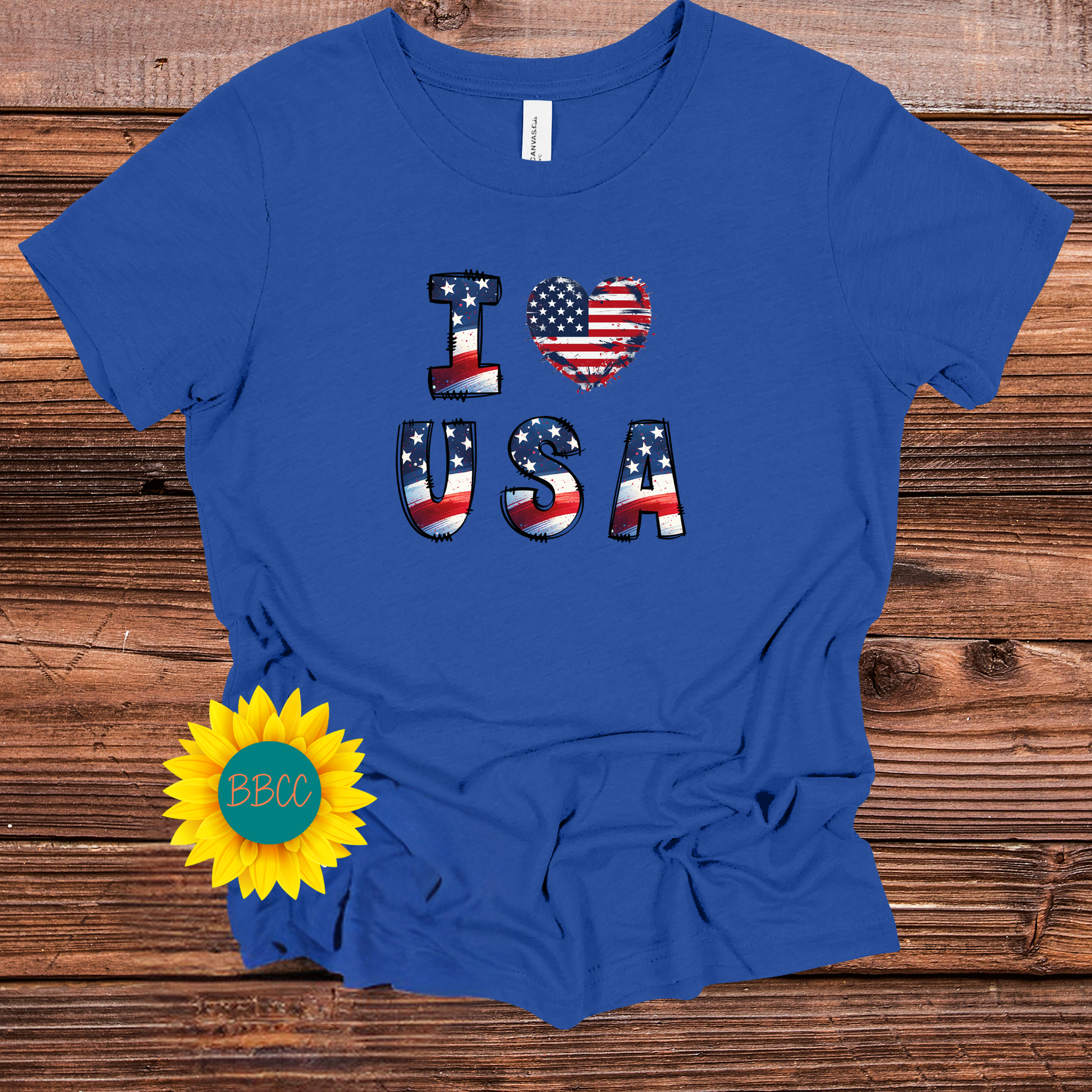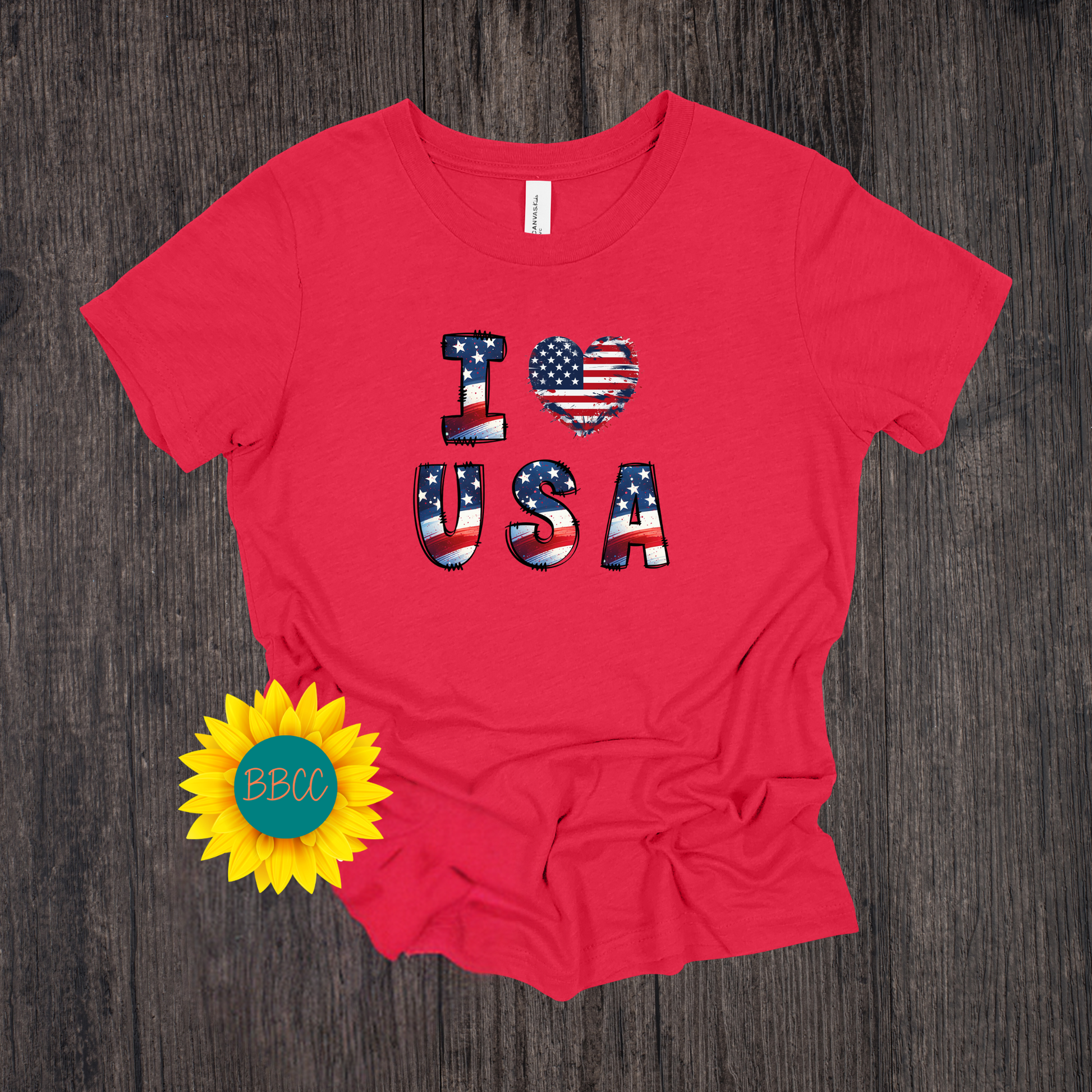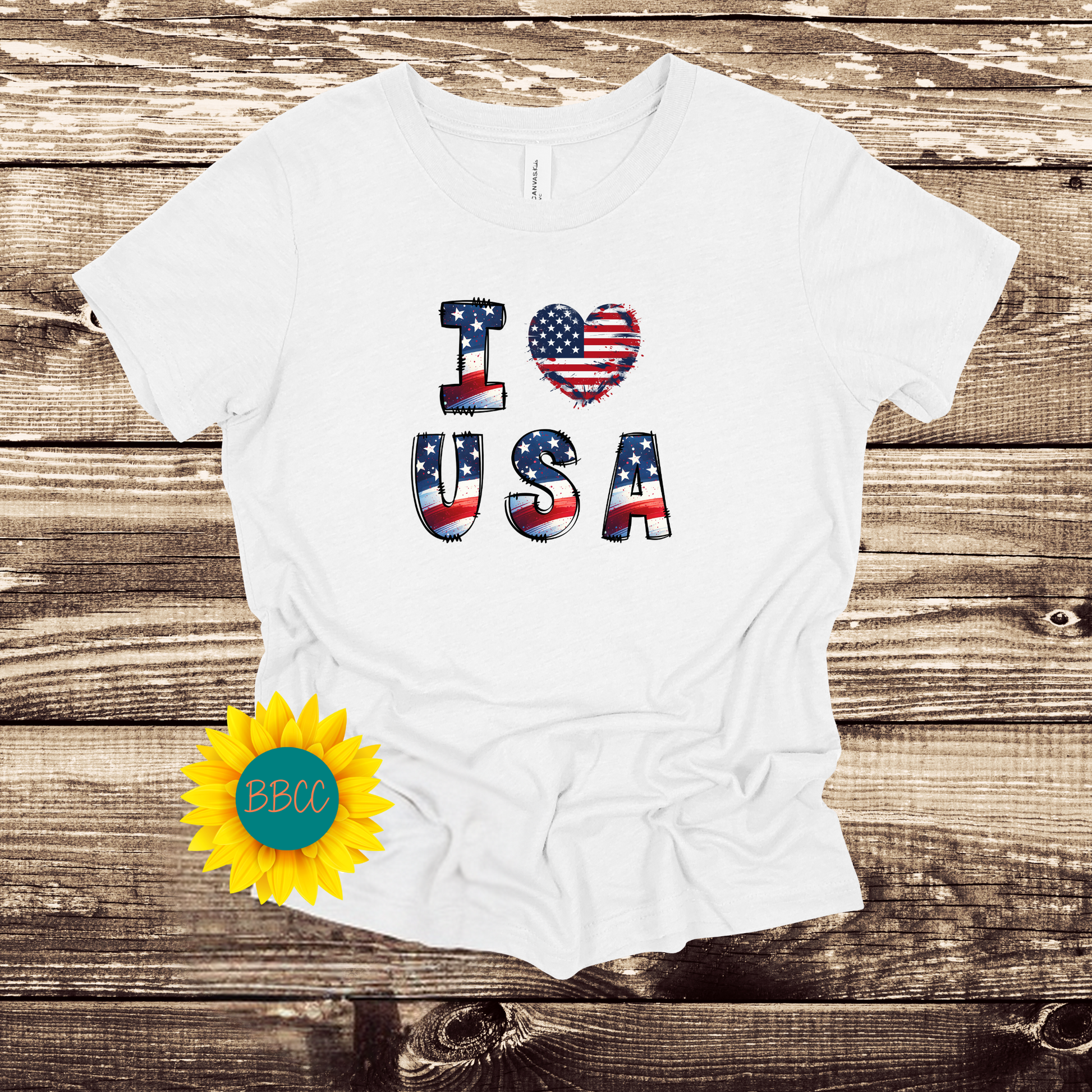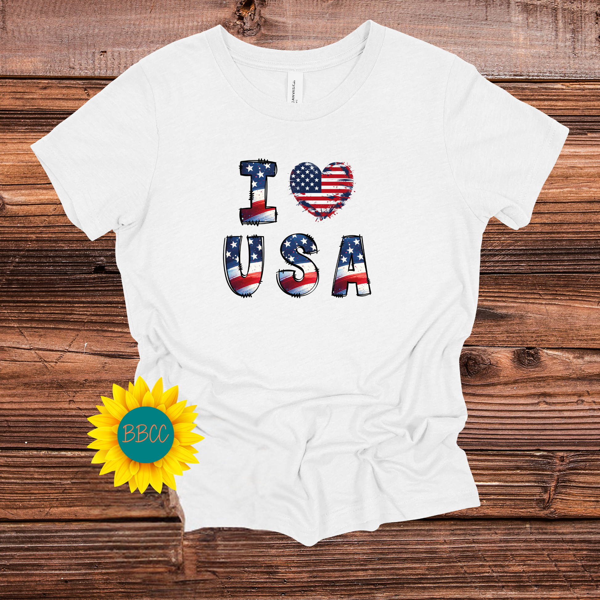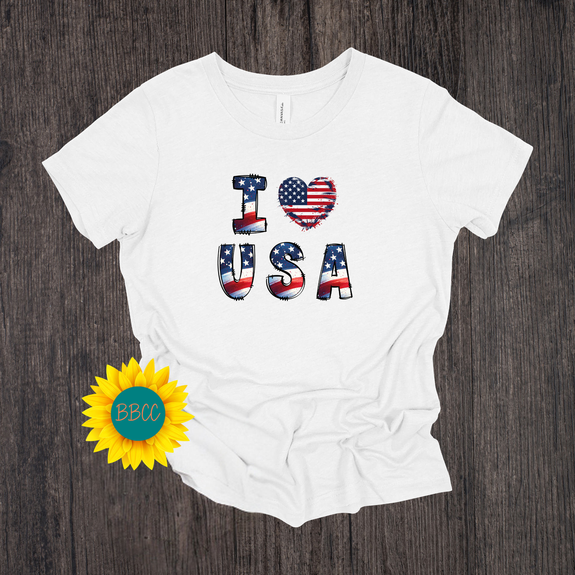 Show off your love for the USA with this fun and quirky tee, featuring a bold “I Heart USA” design along with the iconic American flag. Whether you're celebrating a holiday or simply embracing your patriotic spirit, this shirt is a must-have for any proud American.