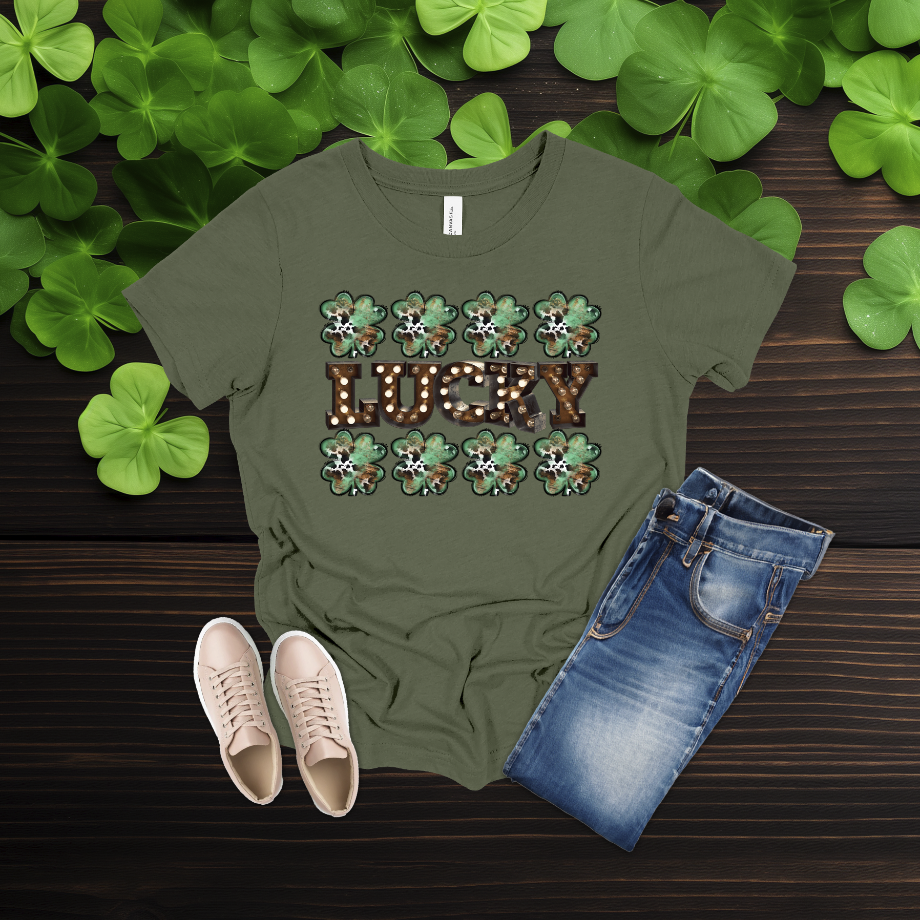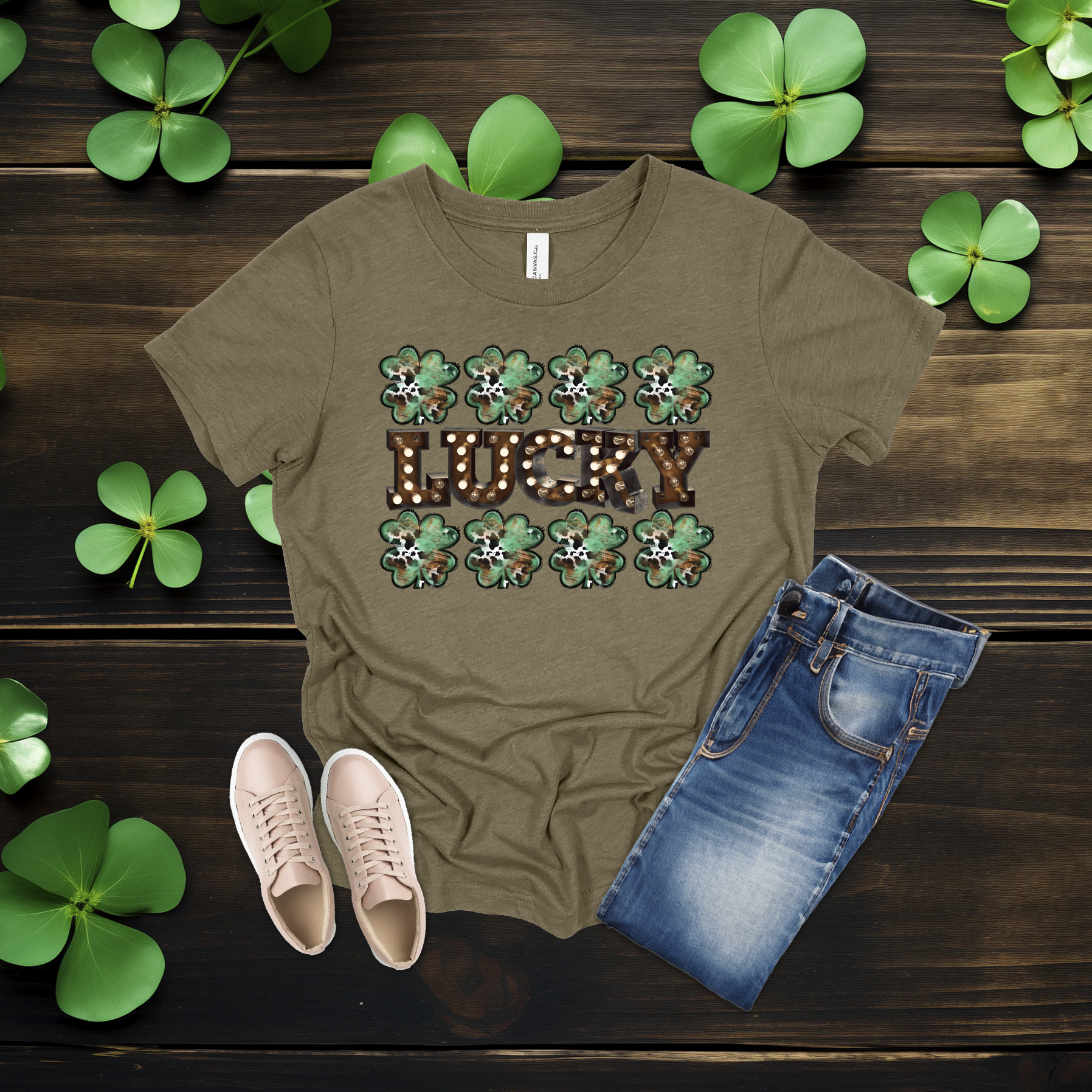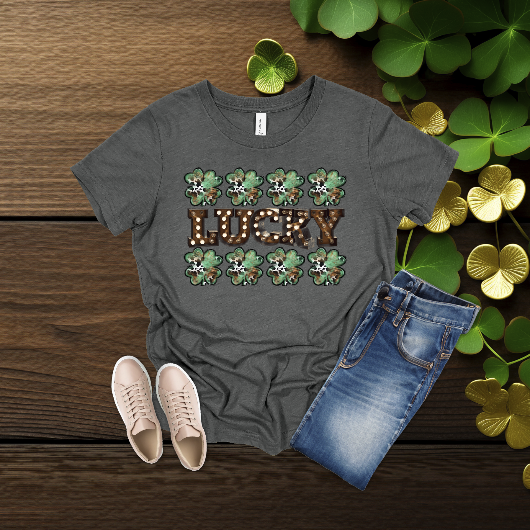 Celebrate the luck of the Irish with this bold Lucky shamrock tee! Featuring festive clovers and a rustic-style design on a bright gold shirt, it’s perfect for St. Patrick’s Day fun or everyday wear. Simple, comfy, and full of Irish charm 💚