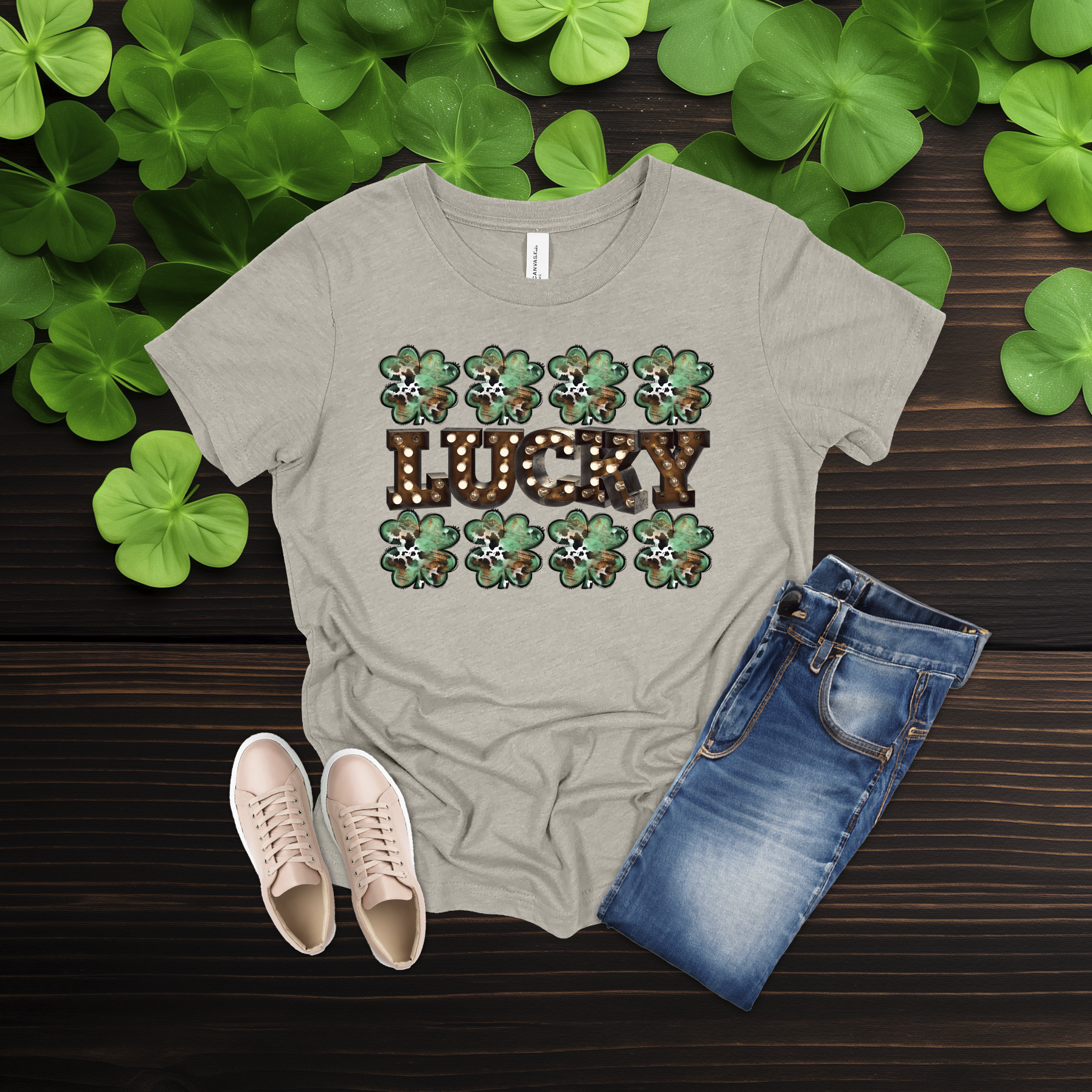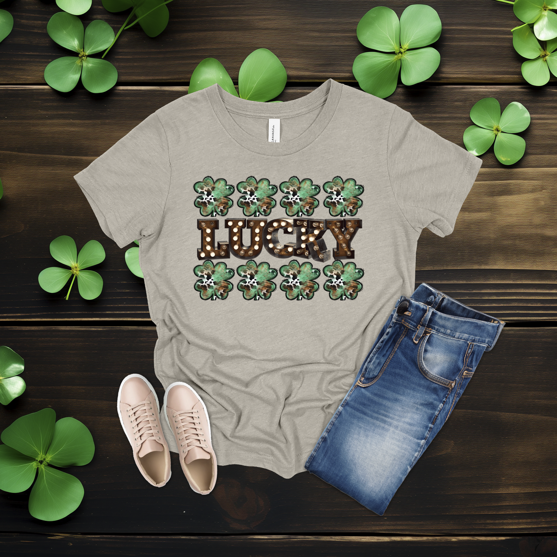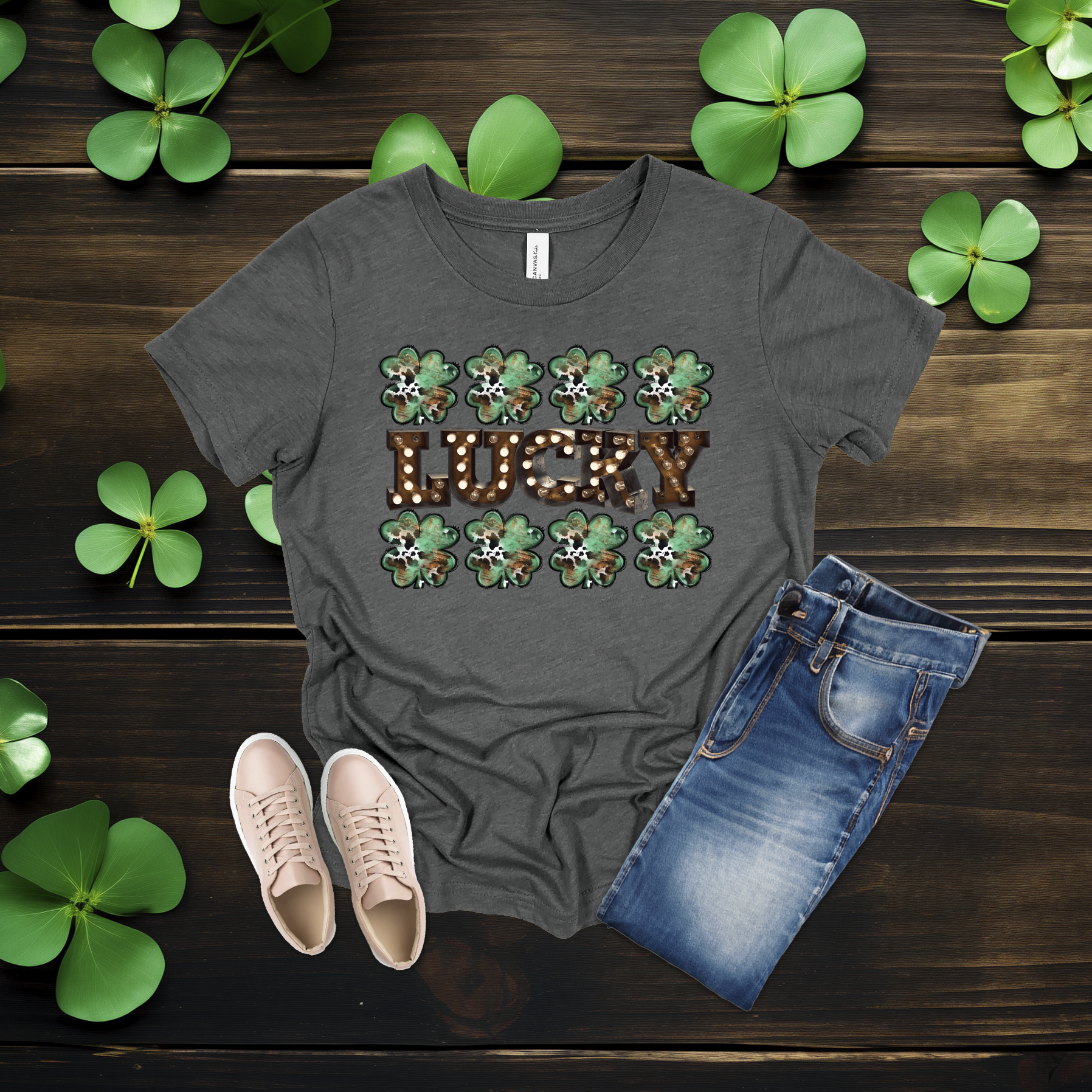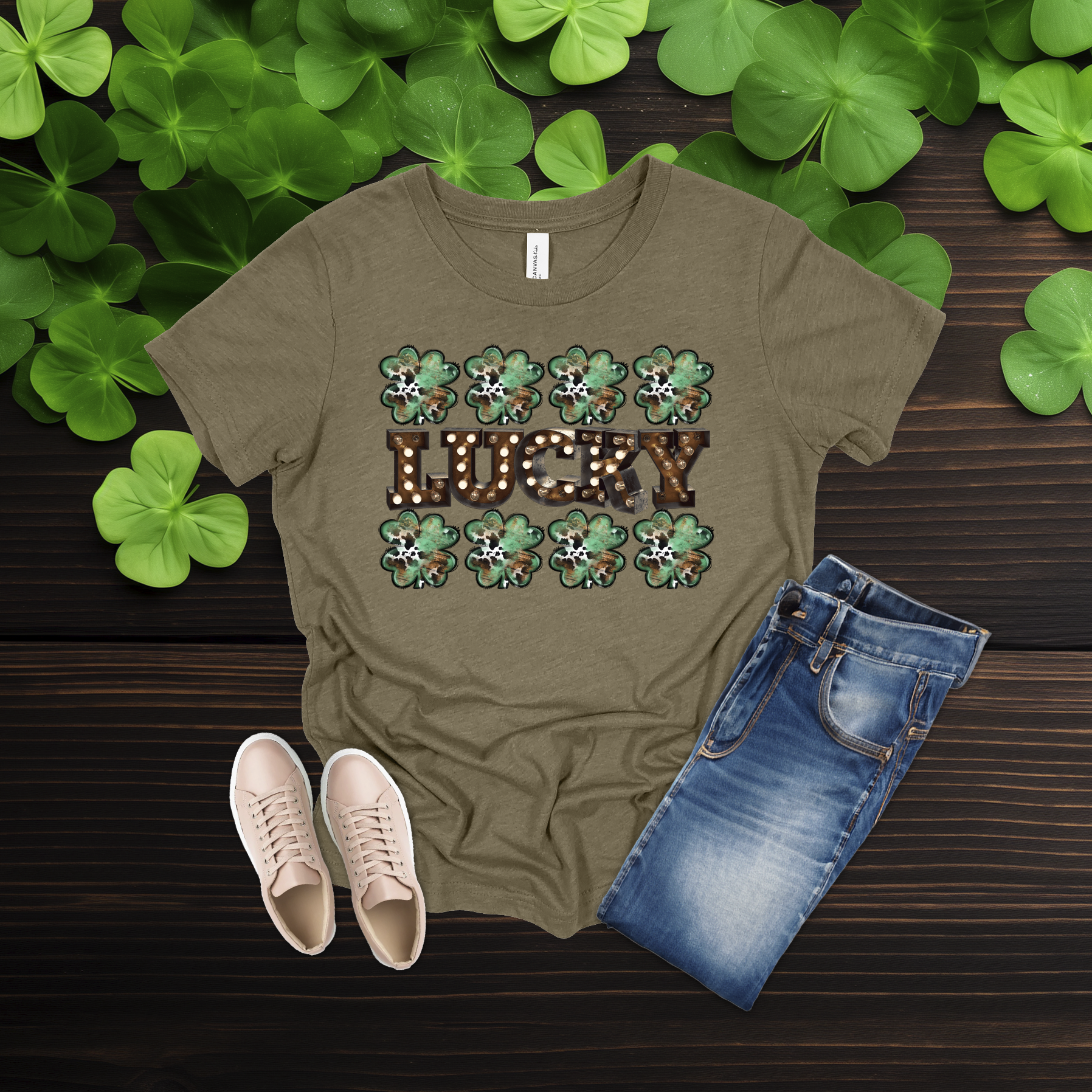 Celebrate the luck of the Irish with this bold Lucky shamrock tee! Featuring festive clovers and a rustic-style design on a bright gold shirt, it’s perfect for St. Patrick’s Day fun or everyday wear. Simple, comfy, and full of Irish charm 💚