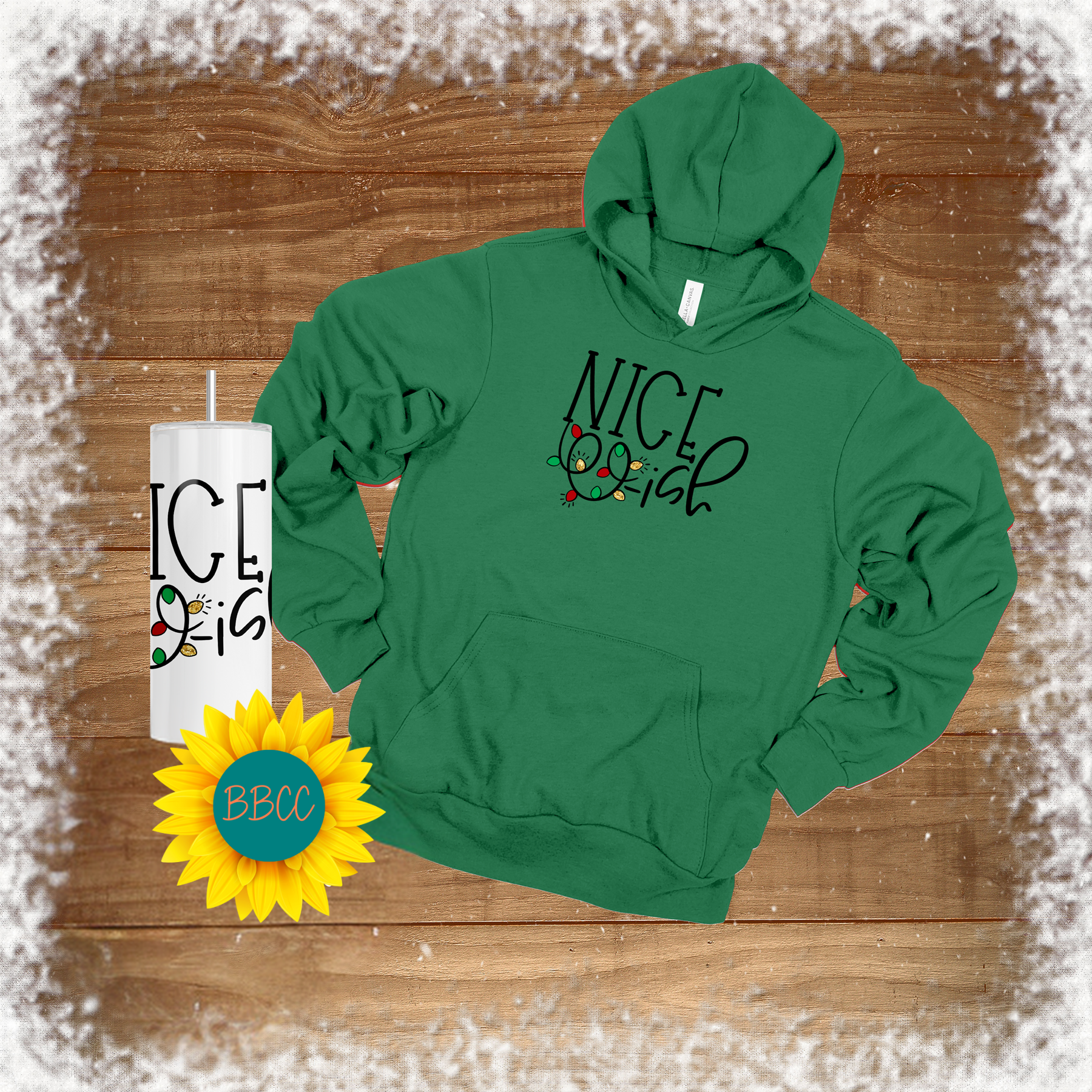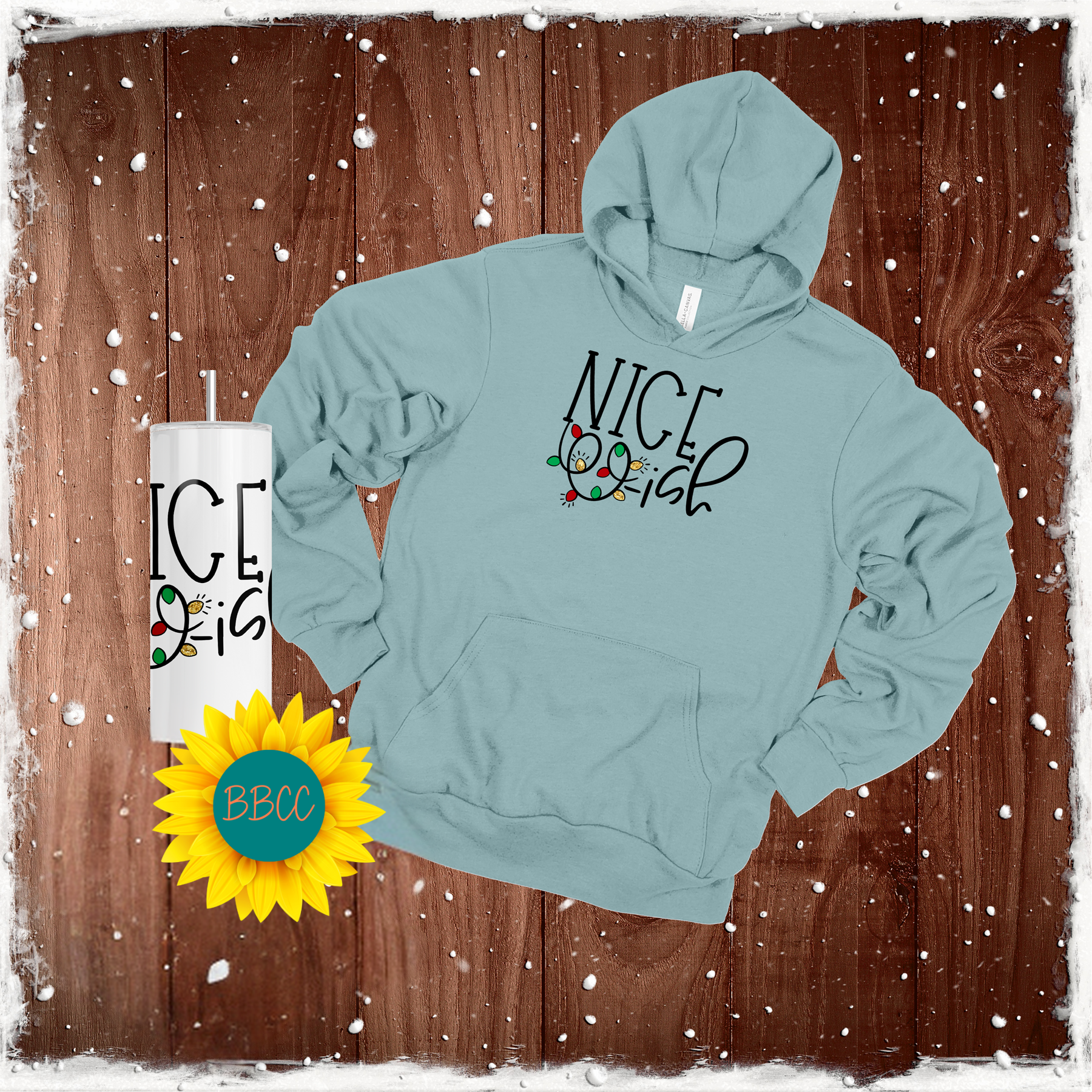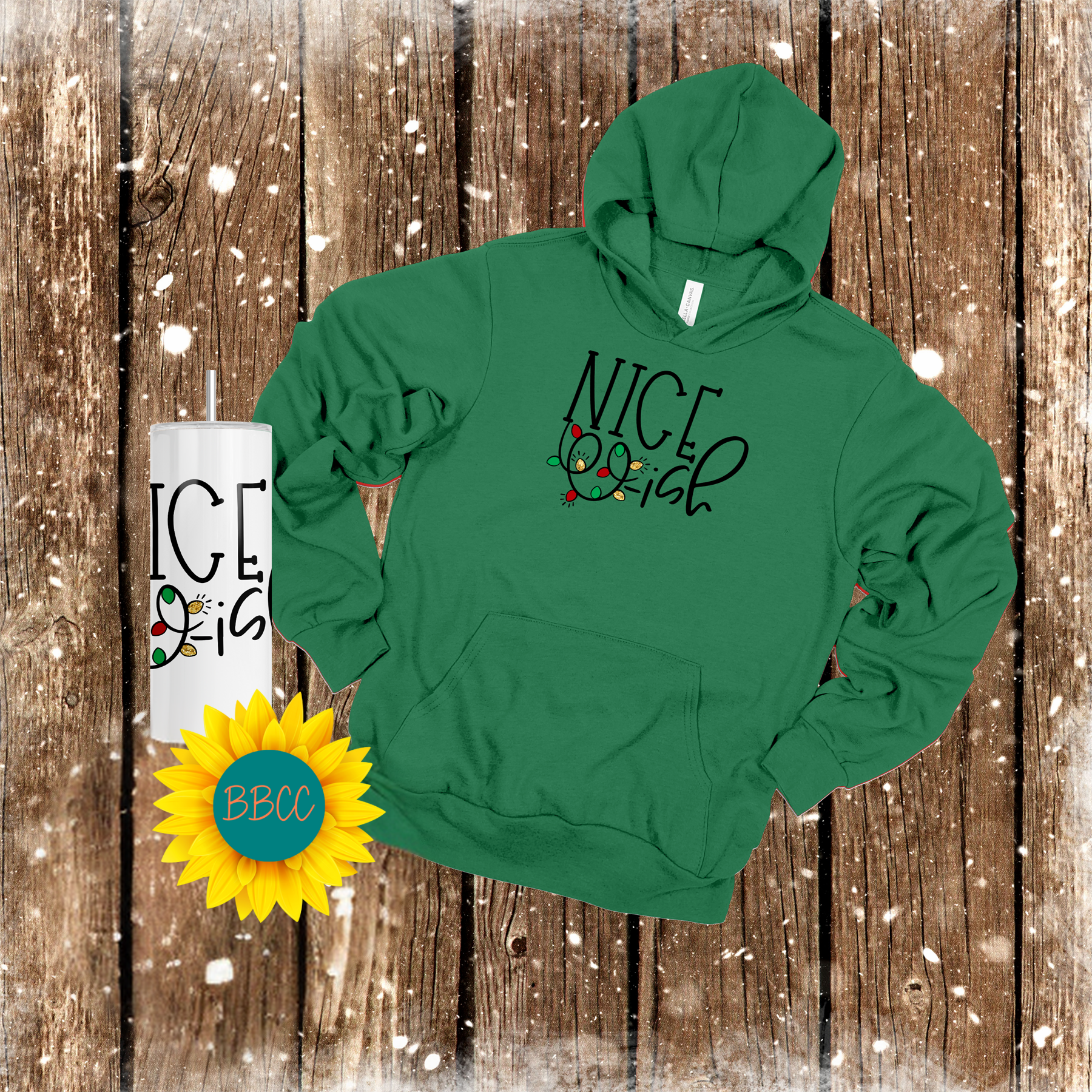 Being on the naughty list never looked so cute. This cozy Bella + Canvas hoodie and matching 20 oz tumbler are perfect for the ones who are nice...ish. Featuring a fun UV DTF design on the tumbler and a comfy sponge fleece B+C hoodie with a bold DTF print, this bundle is your go-to for snarky holiday vibes.