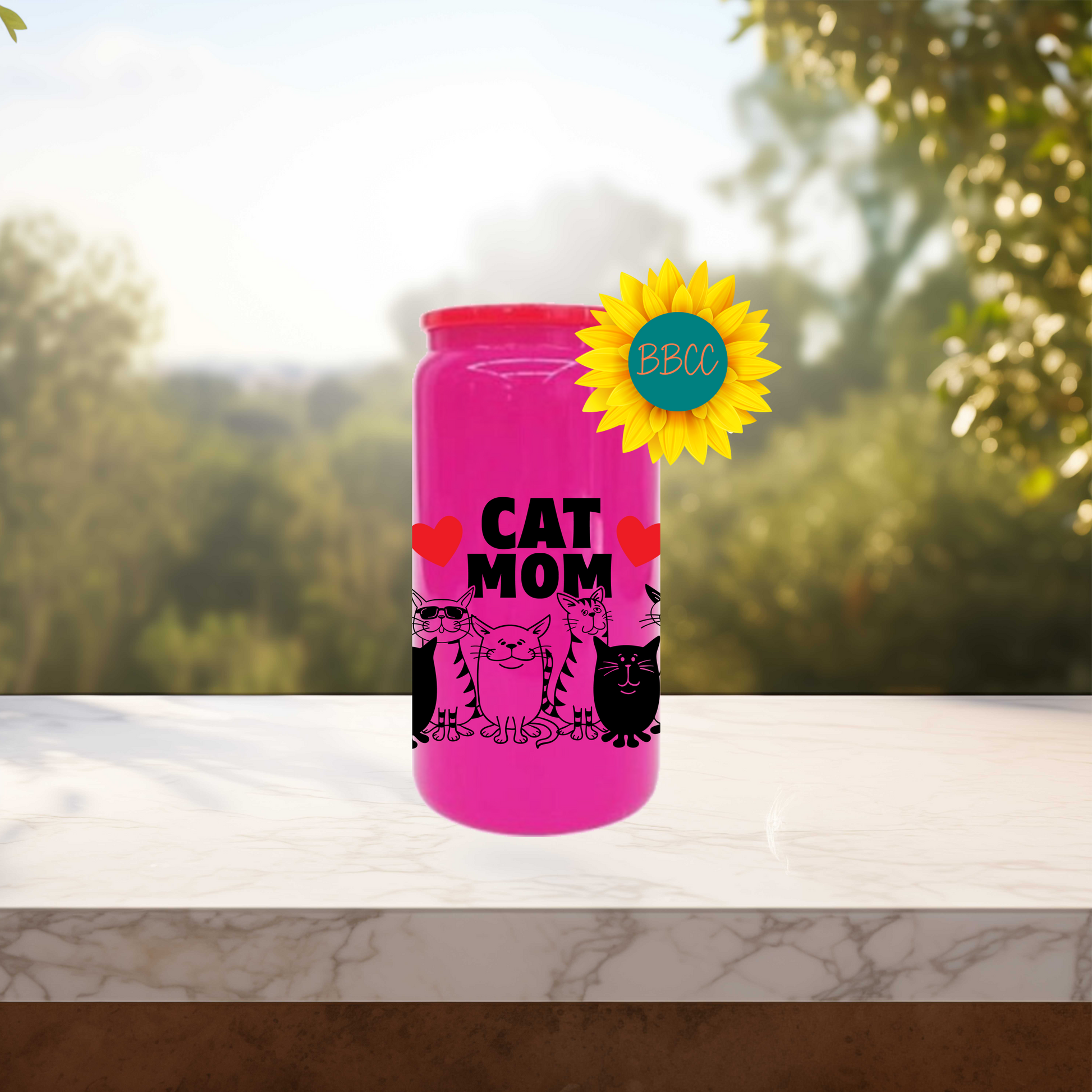 Show off your fur baby love! Choose between our Cat Mom or Dog Mom design — both available on durable plastic or insulated powder-coated stainless steel. Fun, vibrant colors make every sip a little brighter.