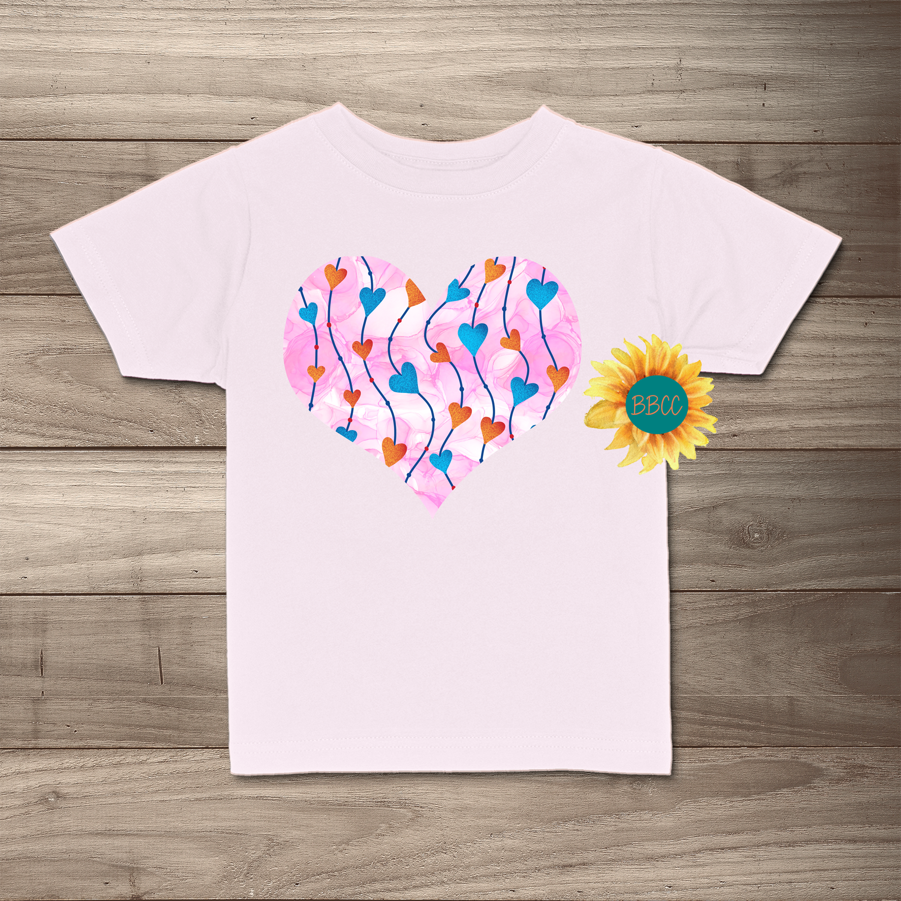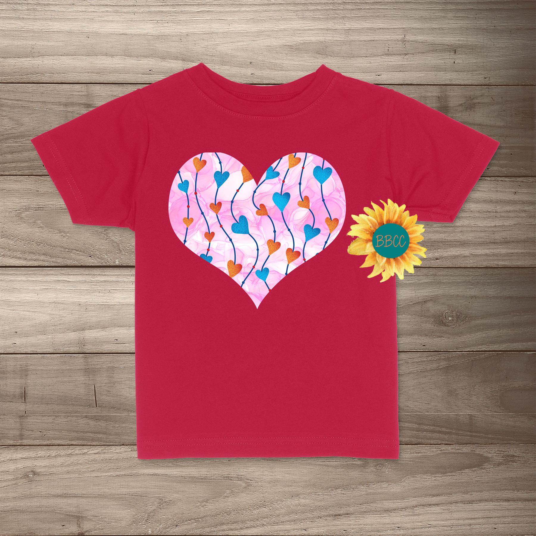 Stay stylish with our Red & Blue Hearts T-Shirt! Featuring a cute white heart adorned with pink swirls and red & blue hearts on strings, this tee is perfect for any occasion. Available in multiple colors and sizes 2T–7, it’s the ideal way to showcase your unique and fashionable taste.