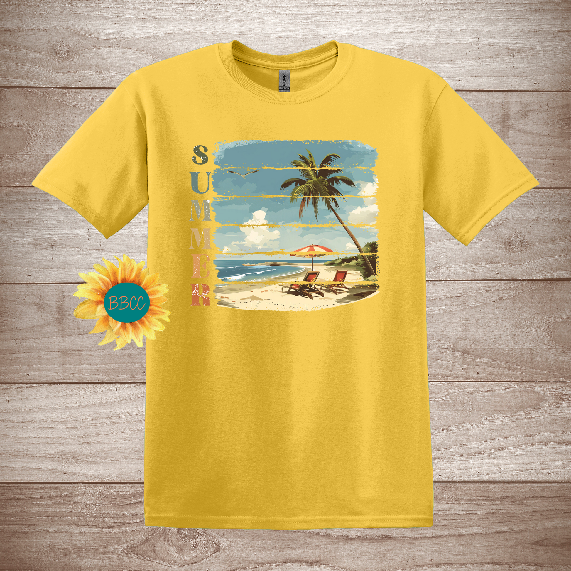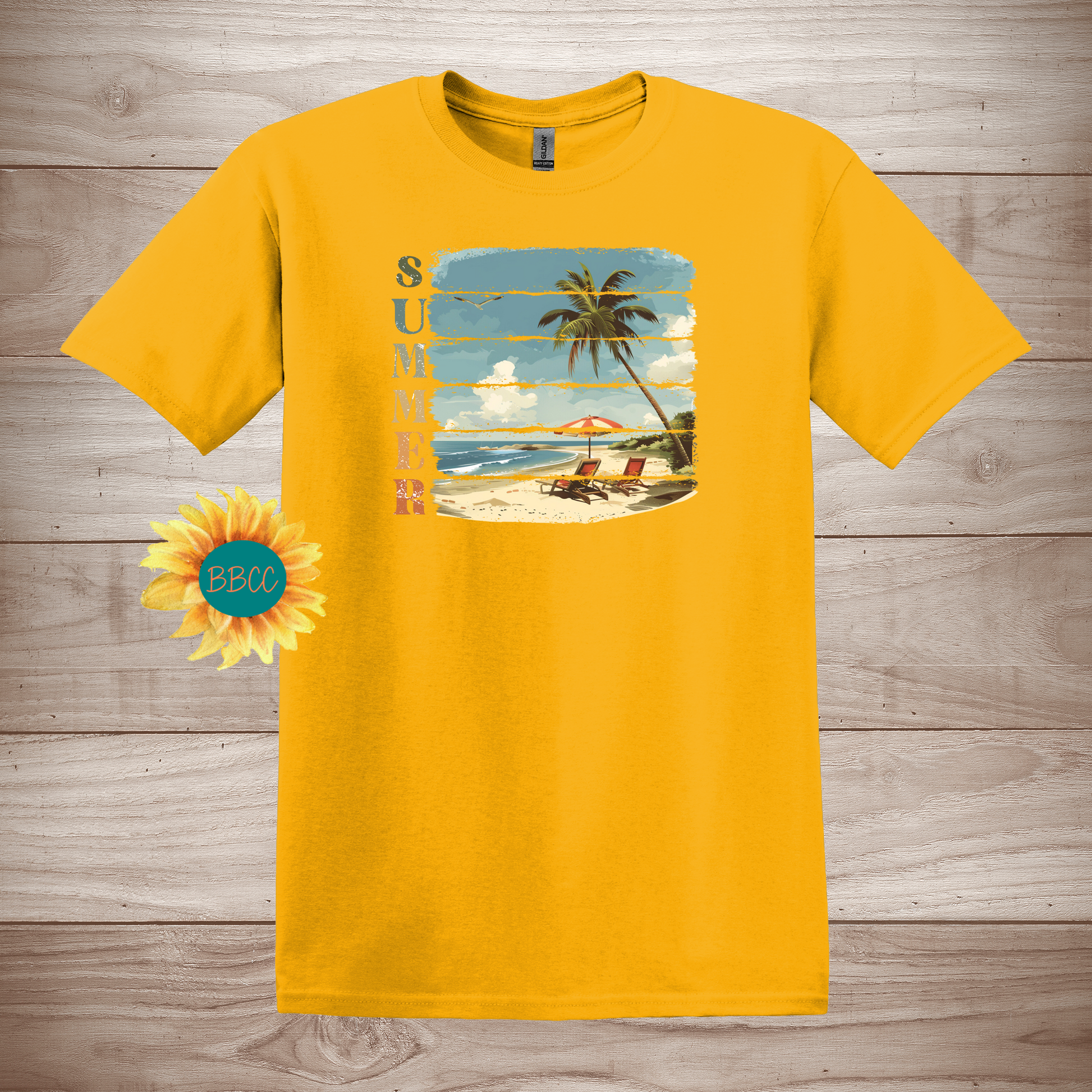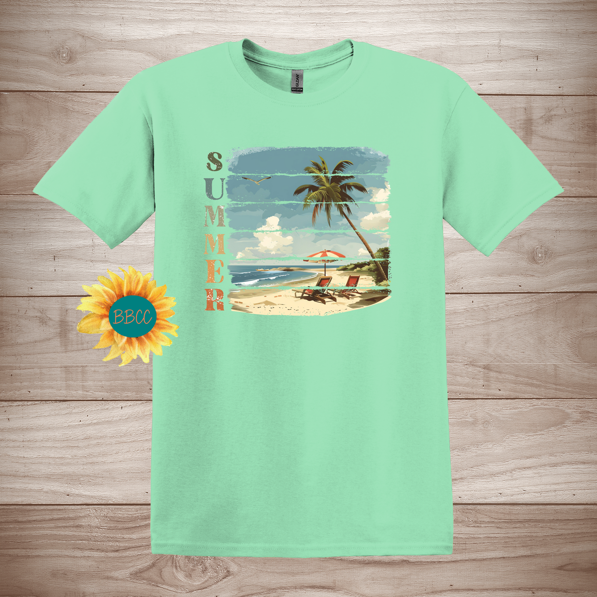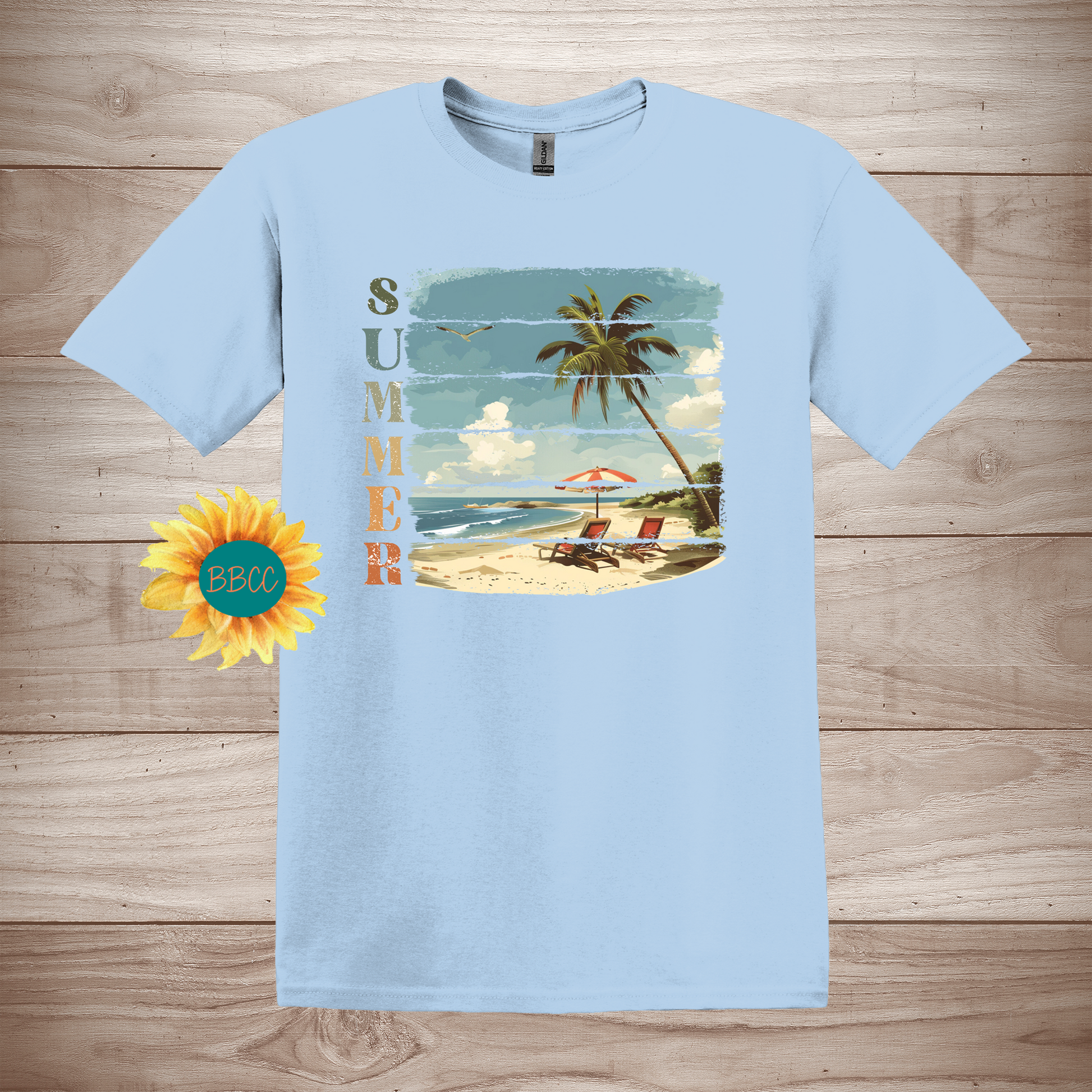 This one’s for the sunshine chasers and beach dreamers. Featuring a dreamy shoreline scene and vintage-style “SUMMER” lettering, this tee gives off all the relaxed, carefree vibes of a perfect day by the ocean. It’s soft, easy to wear, and full of nostalgia—just like your favorite summer memory. Available in a range of colors to match your mood, this design is your go-to for vacation days or anytime you’re manifesting a little coastal magic.