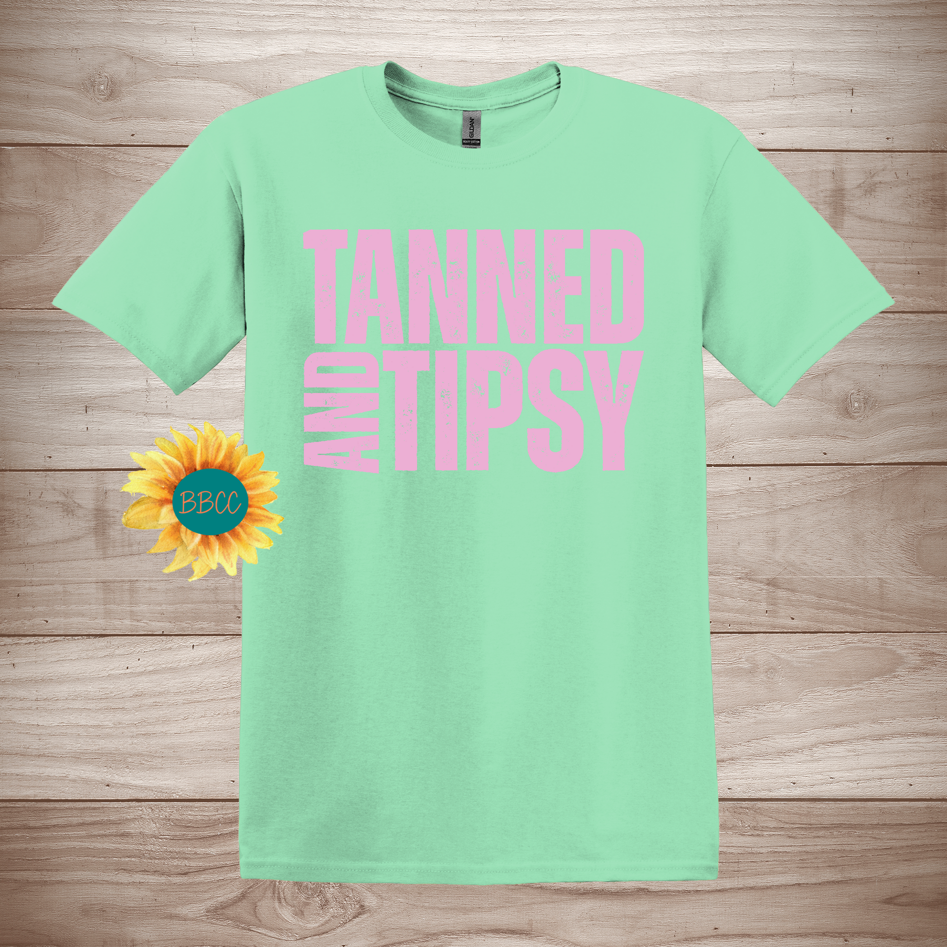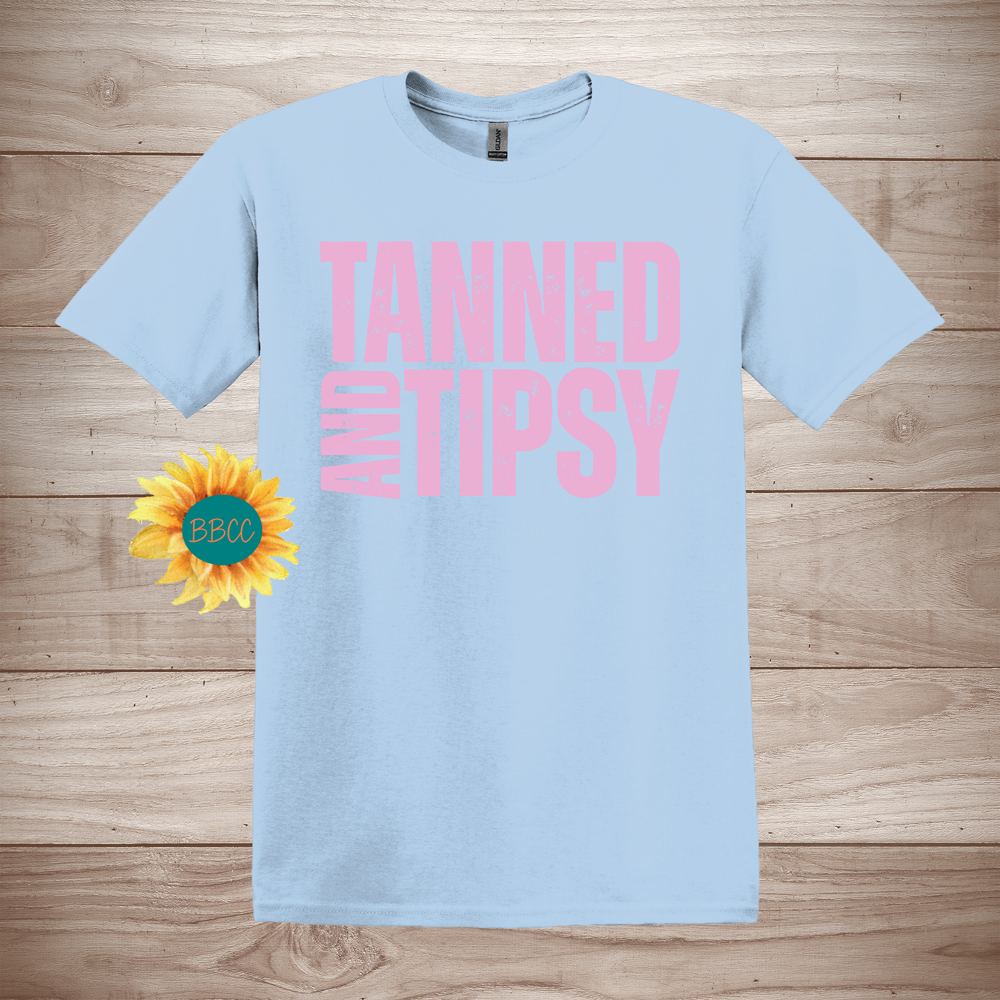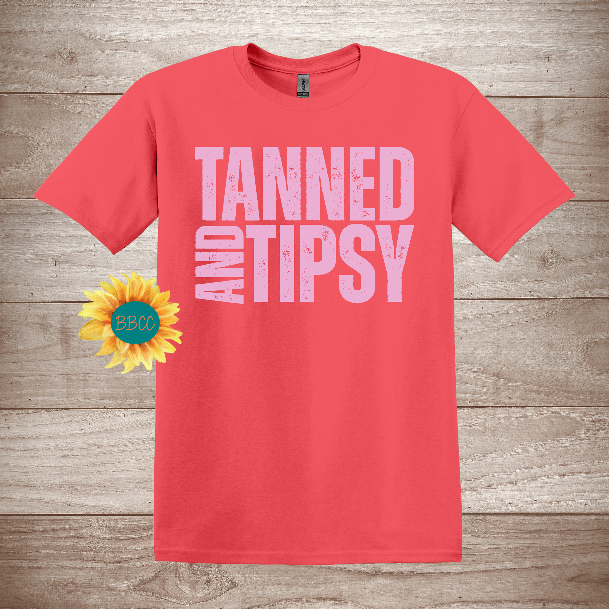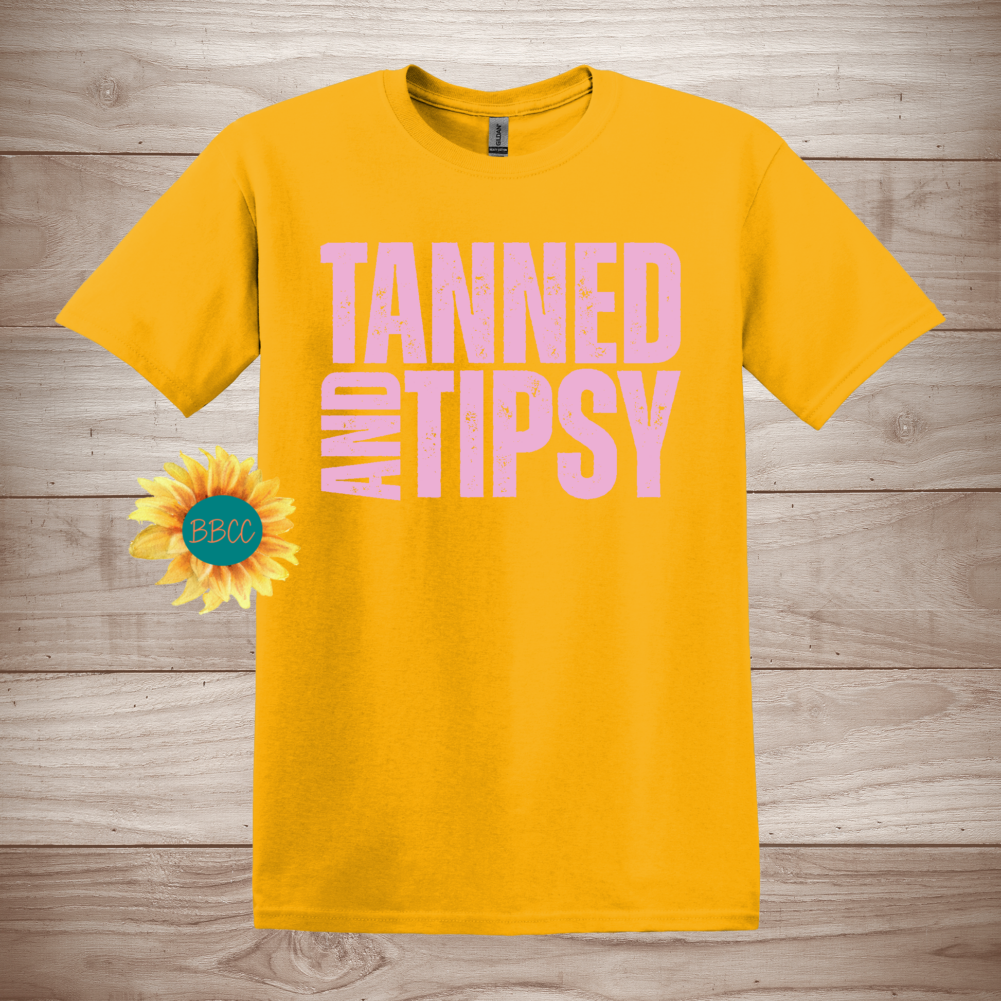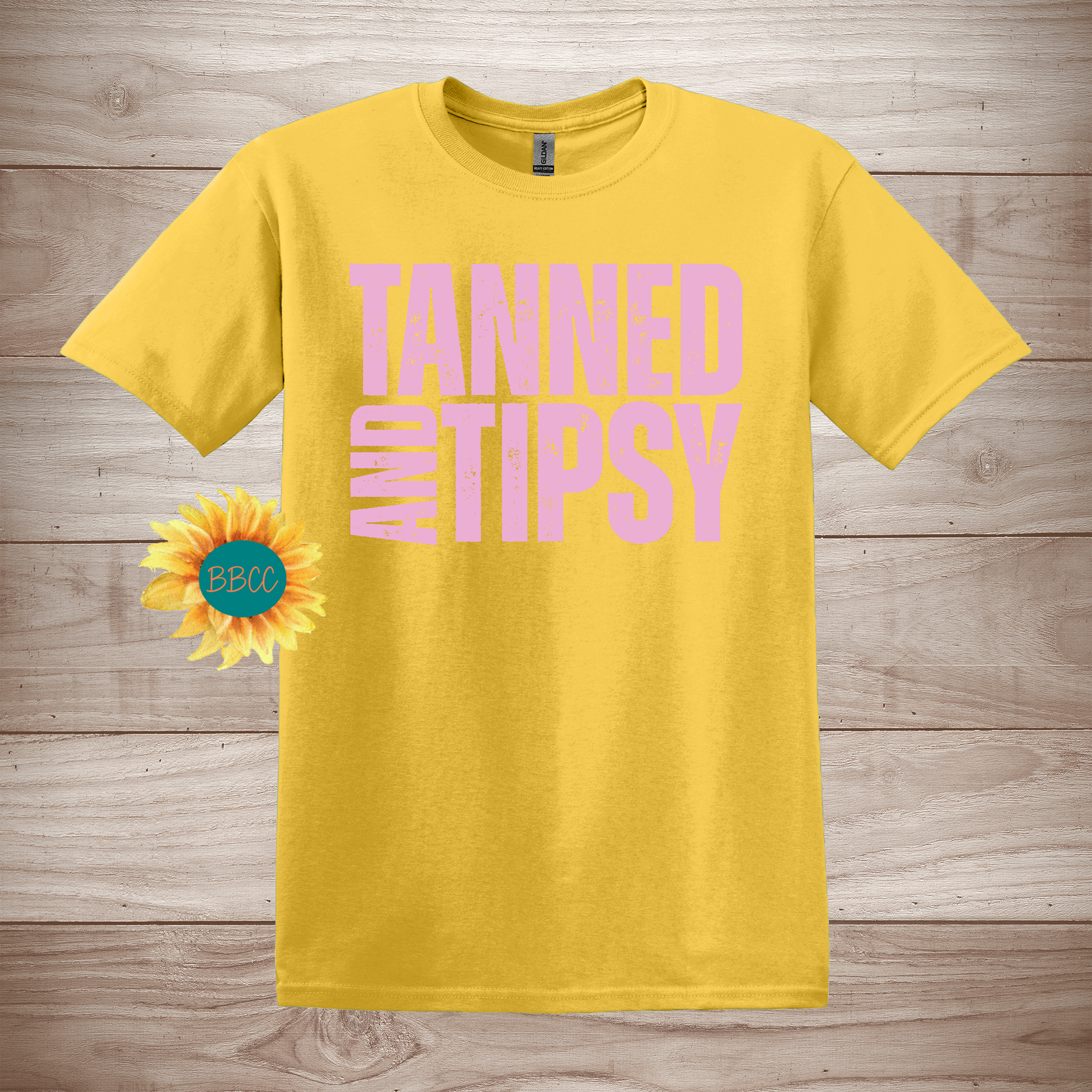 Stay bold and beach-ready in our "Tanned and Tipsy" graphic tee! Featuring distressed pink lettering on a fun, sunny background, this shirt is perfect for summer vibes, beach parties, or a girls’ getaway. Available in multiple colors to suit your mood!