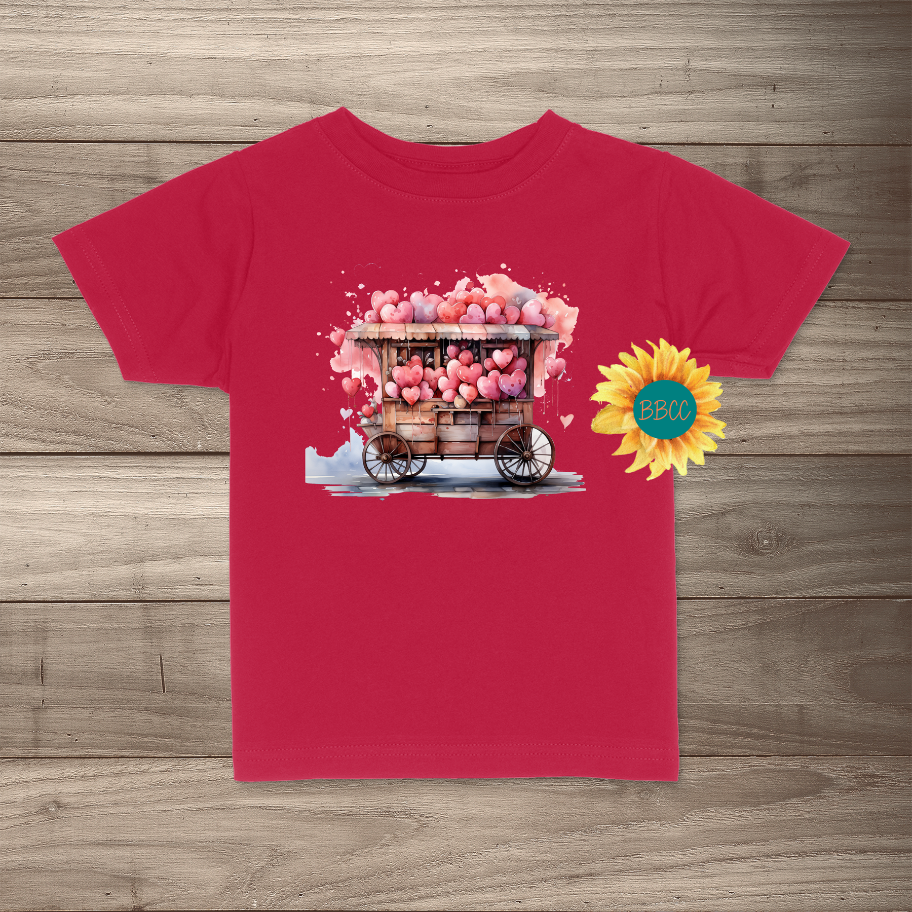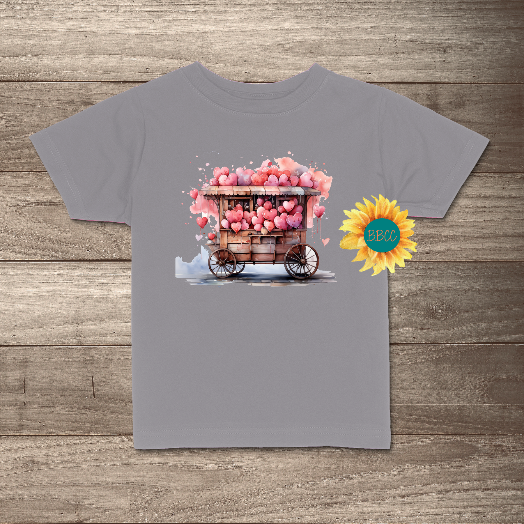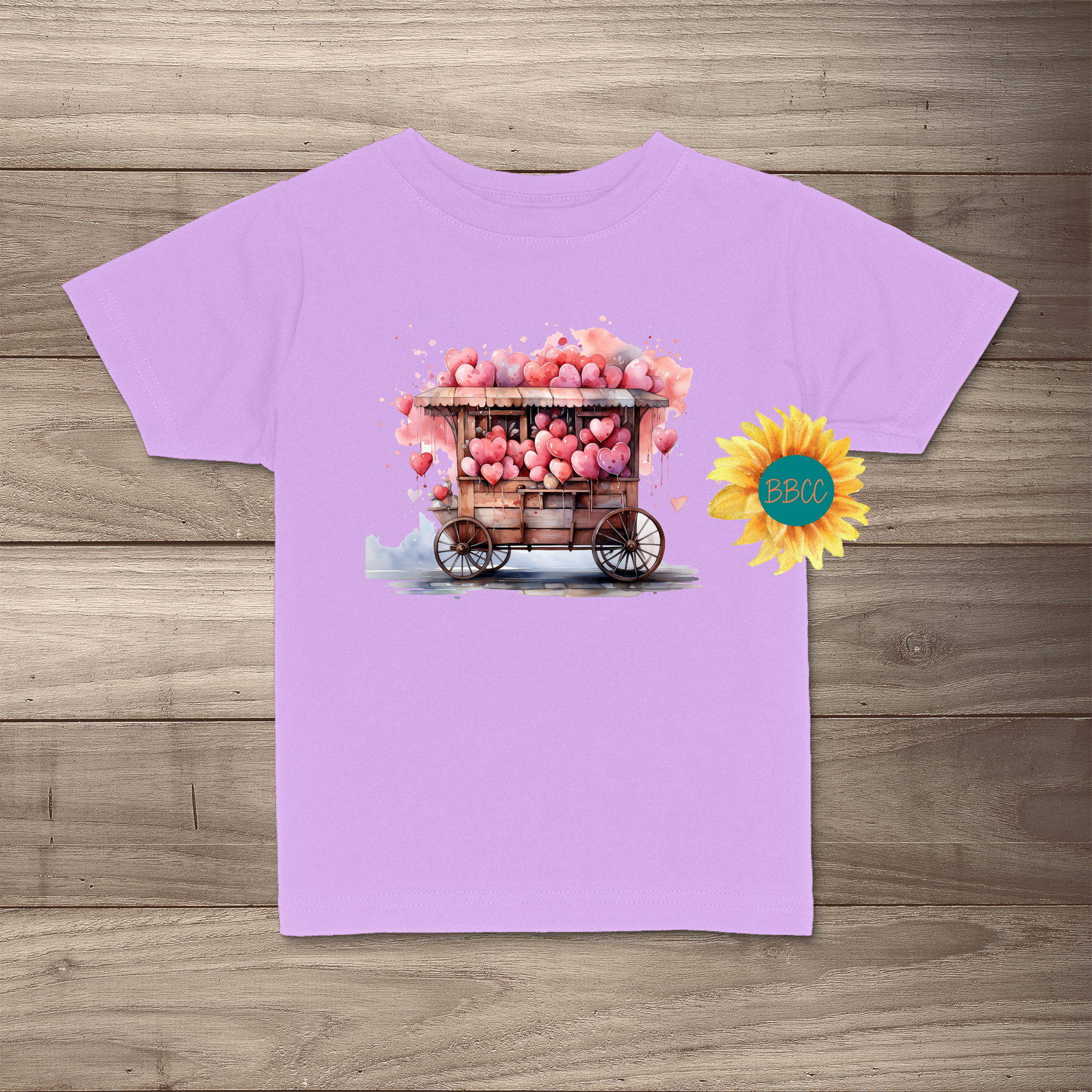 Celebrate Valentine’s Day in style with our charming Valentine Cart T-Shirt. Featuring an adorable flower cart filled with hearts, this shirt comes in multiple vibrant colors, making it perfect for an eye-catching look. Available in sizes 2T–7, it’s the perfect choice for spreading love a