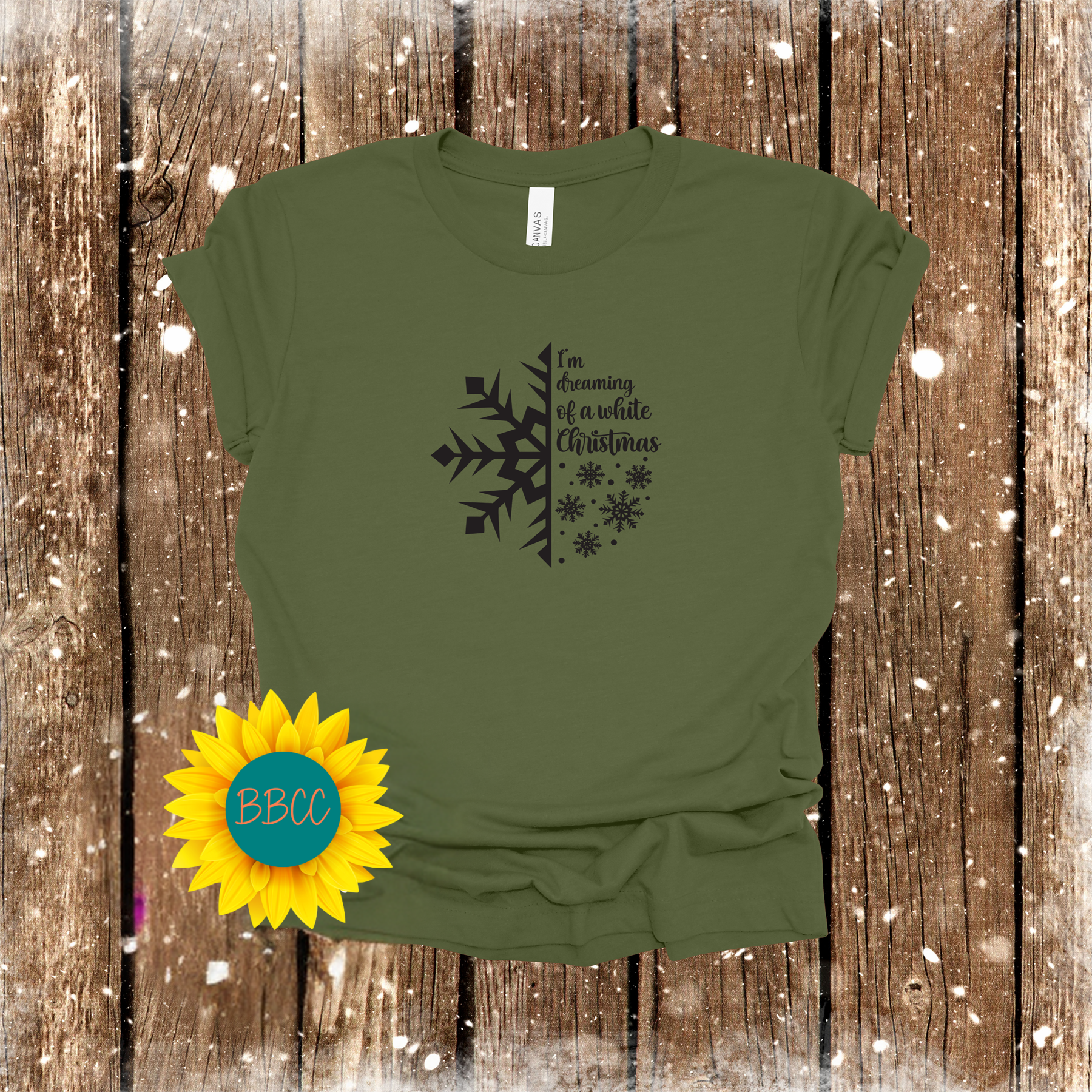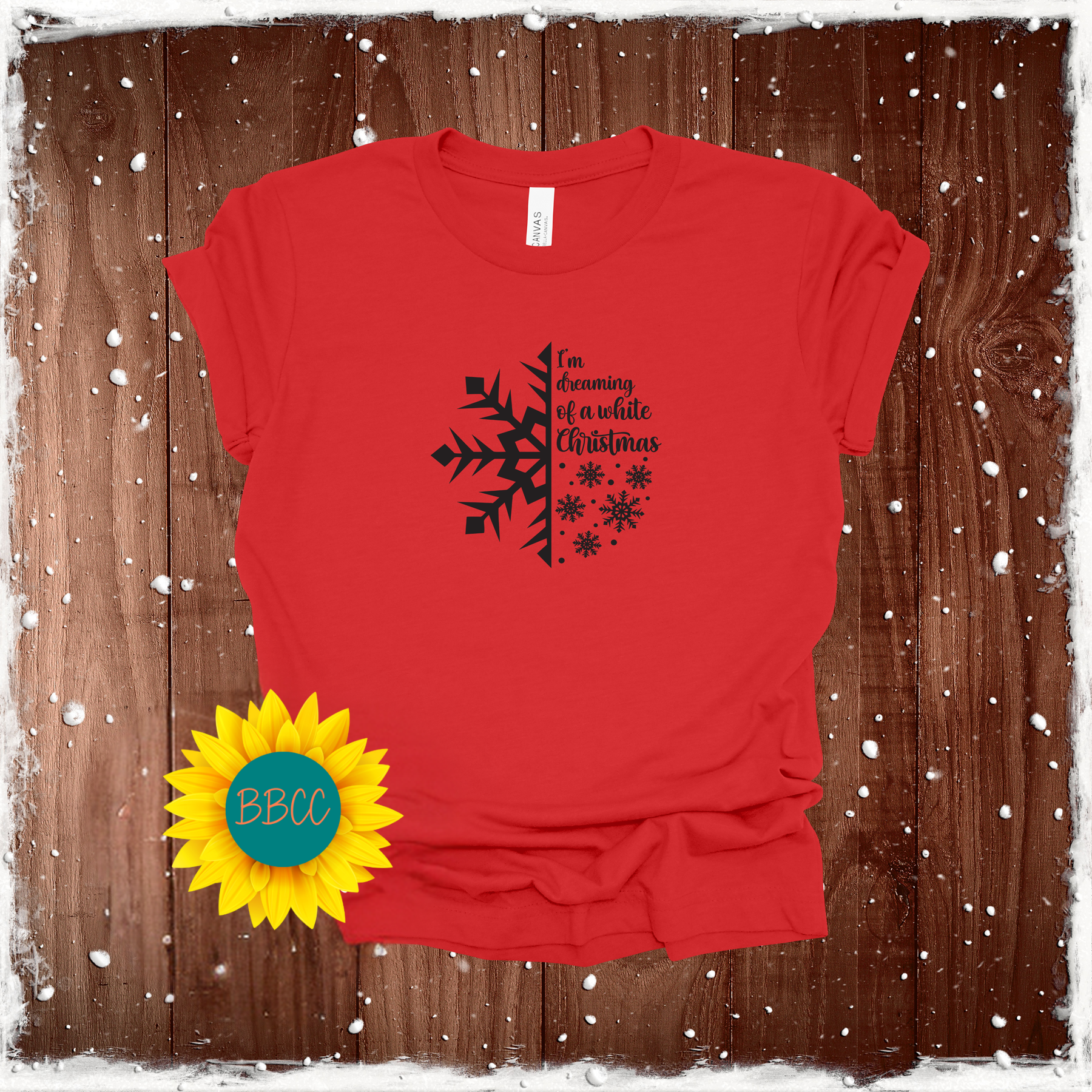 Embrace the holiday spirit with our half snowflake t-shirt, featuring the classic phrase "I'm dreaming of a white Christmas". Perfect for festive gatherings and cozy nights in, this tee will add a touch of cheer to your wardrobe. Let it snow, let it snow, let it snow (on your shirt)!